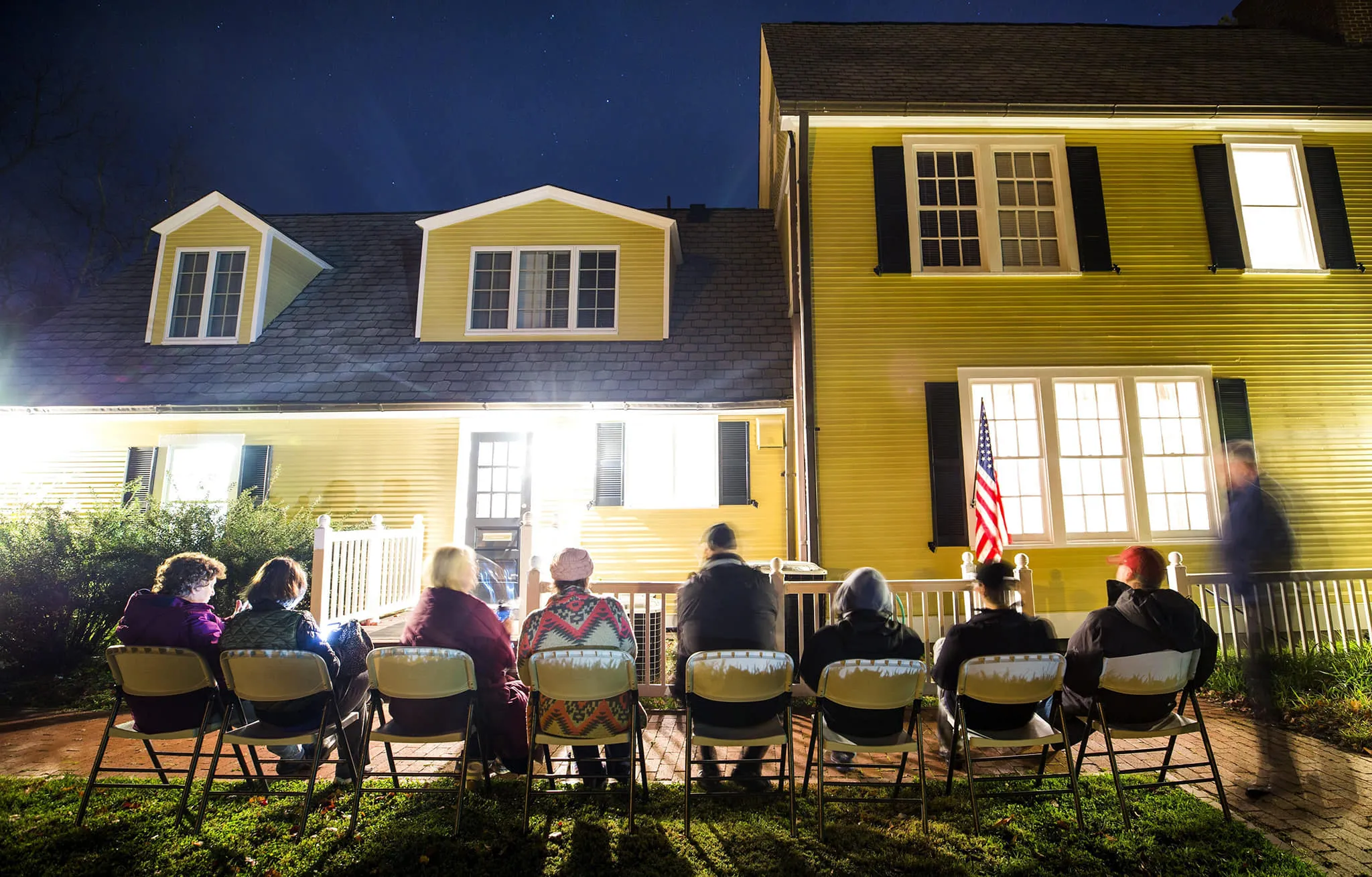 Virginia residents wait in line in the pre-dawn hours to vote in the the 2016 US presidential election before the polls open at an historic property called the “Hunter House” at Nottoway Park in Vienna, Virginia, USA, 08 November 2016. US Americans are called to the polls in the election to chose the 45th President of the United States of America to serve from 2017 through 2020. (Photo by Jim Lo Scalzo/EPA)