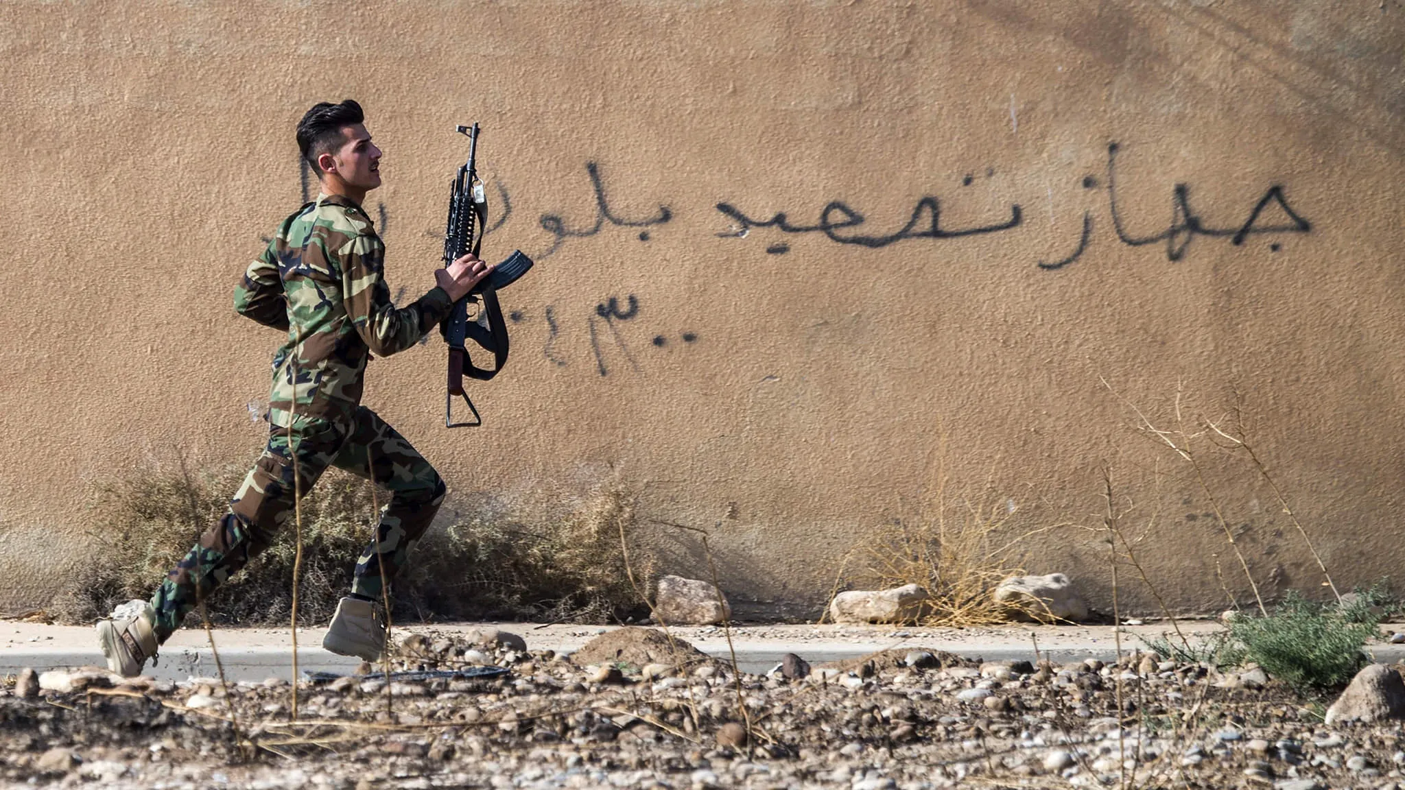 A Peshmerga fighter runs to take position as the Iraqi Kurdish forces pushed deeper into the town of Bashiqa during street battles against Islamic State (IS) group jihadists on November 8, 2016. Capturing Bashiqa would be one of the final steps in securing the eastern approaches to Mosul, three weeks into an offensive by Iraqi forces to retake the country's second city.