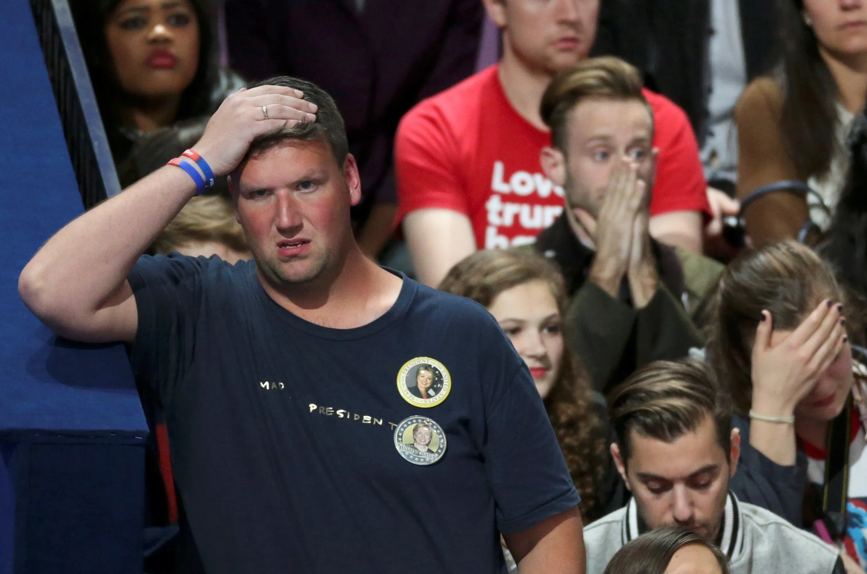Supporters of U.S. Democratic presidential nominee Hillary Clinton react at her election night rally in Manhattan, New York, U.S., November 8, 2016. (Photo by Lucy Nicholson/Reuters)
