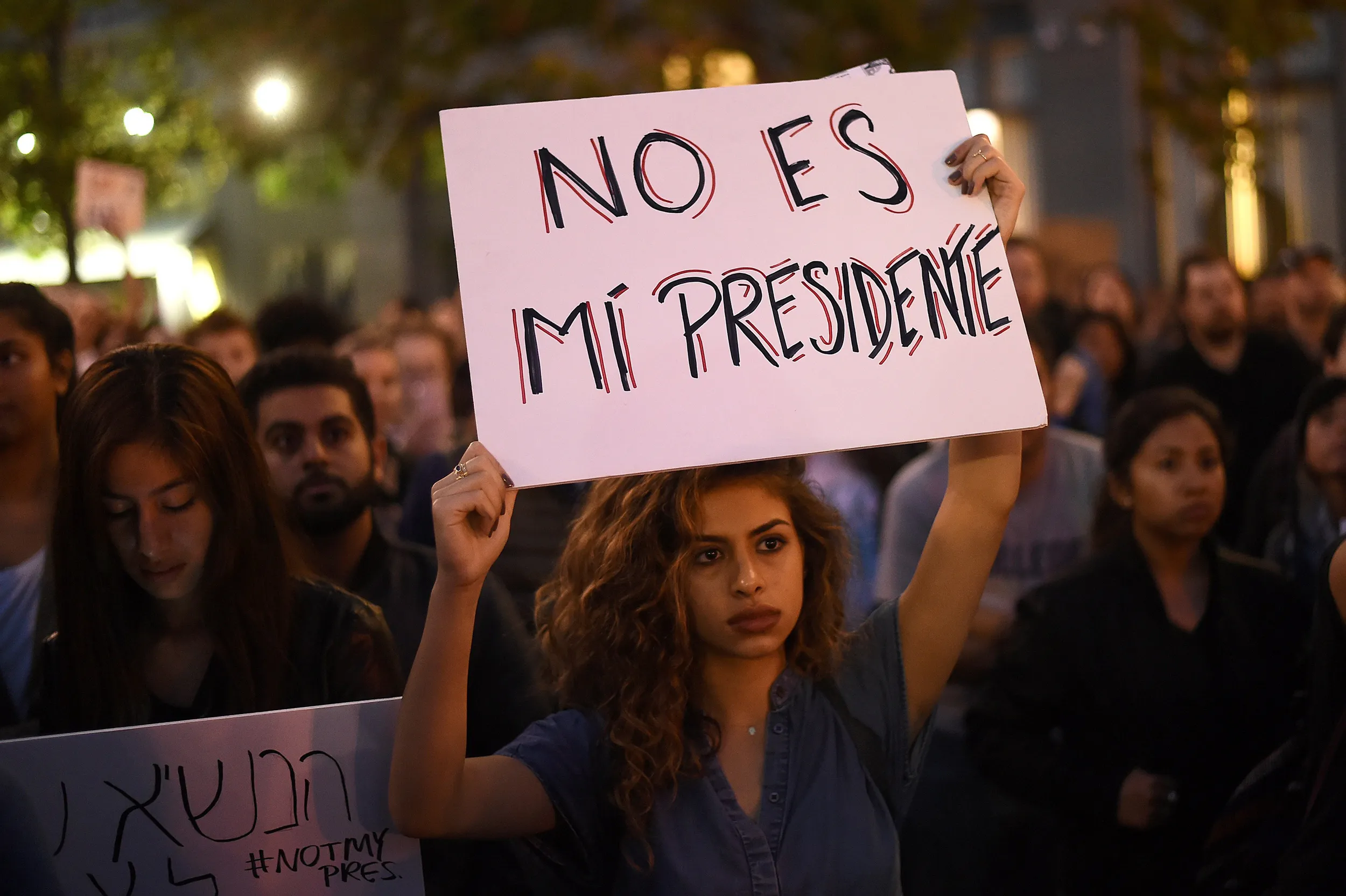 Kimmy, who declined to give a last name, rallies with protesters in Oakland, California, U.S. following the election of Donald Trump as President of the United States November 9, 2016. The sign reads: “He is not my president”. (Photo by Noah Berger/Reuters)