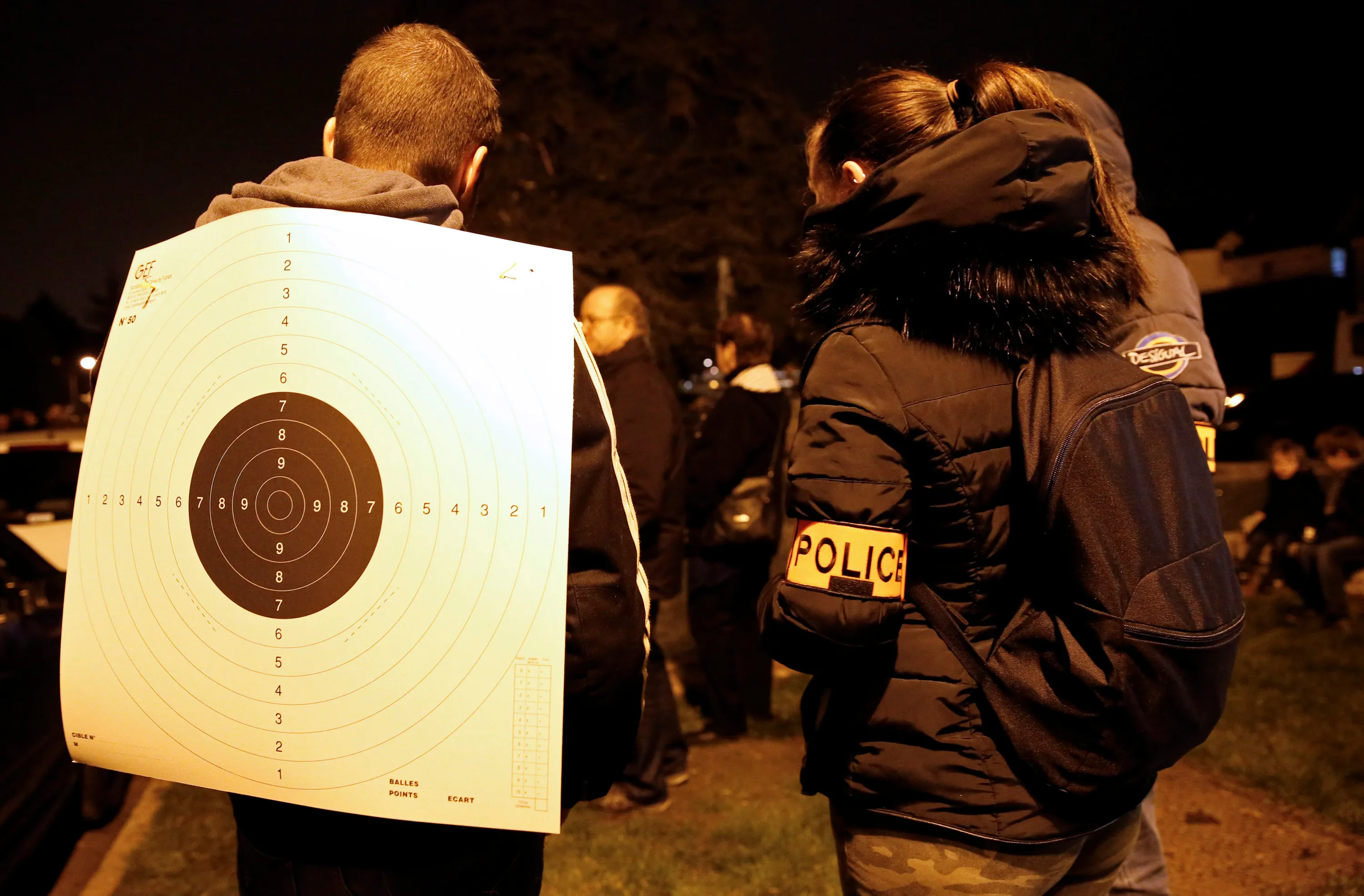 A police officer wearing a target takes part in a protest against anti-police violence in Viry-Chatillon, France, November 8, 2016. (Photo by Jacky Naegelen/Reuters)