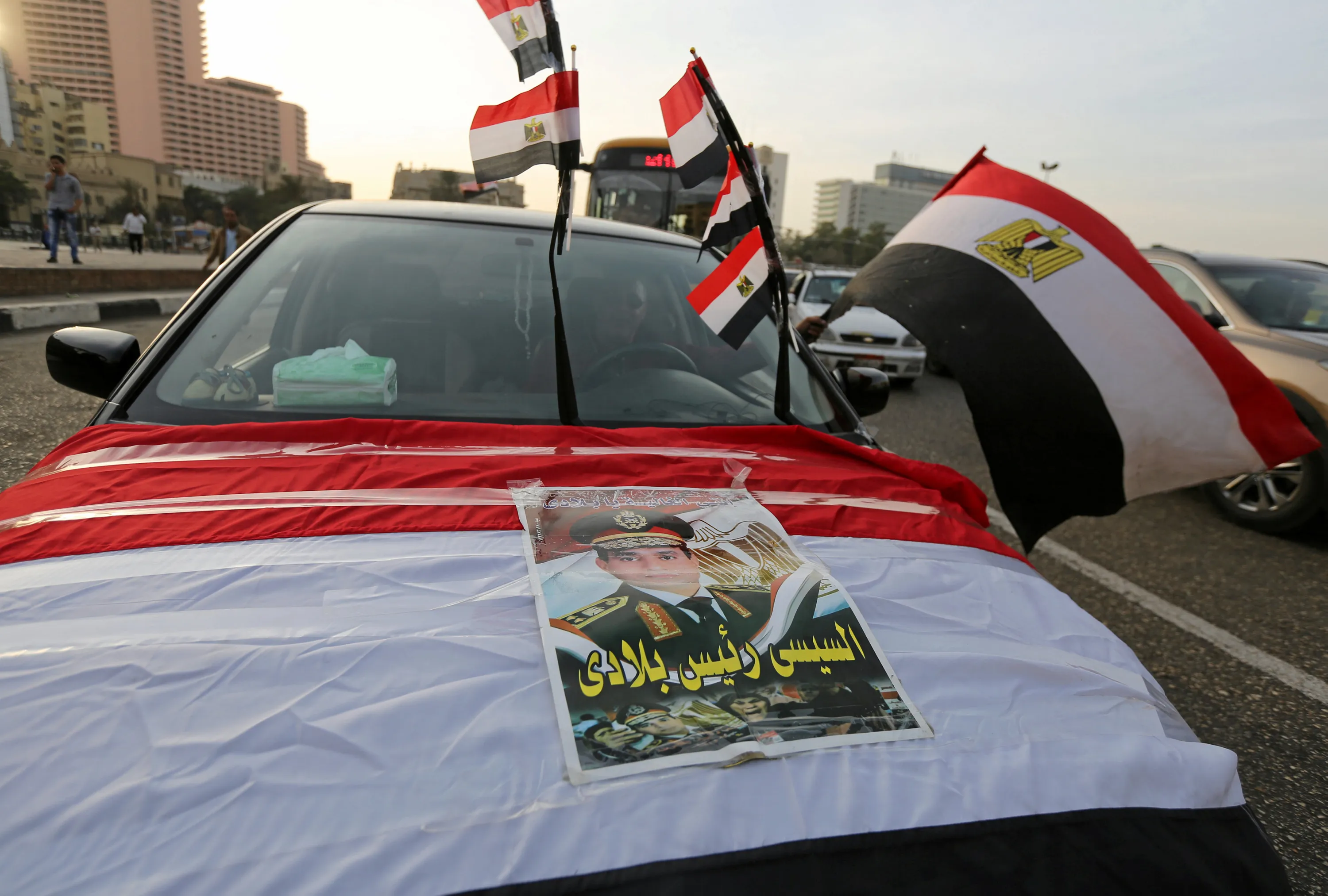 A driver holds a Egyptian flag as he sits in a car with an image of Egyptian President Abdel Fattah al-Sisi, at Tahrir square in Cairo, Egypt, November 11, 2016. (Photo by Mohamed Abd El Ghany/Reuters)