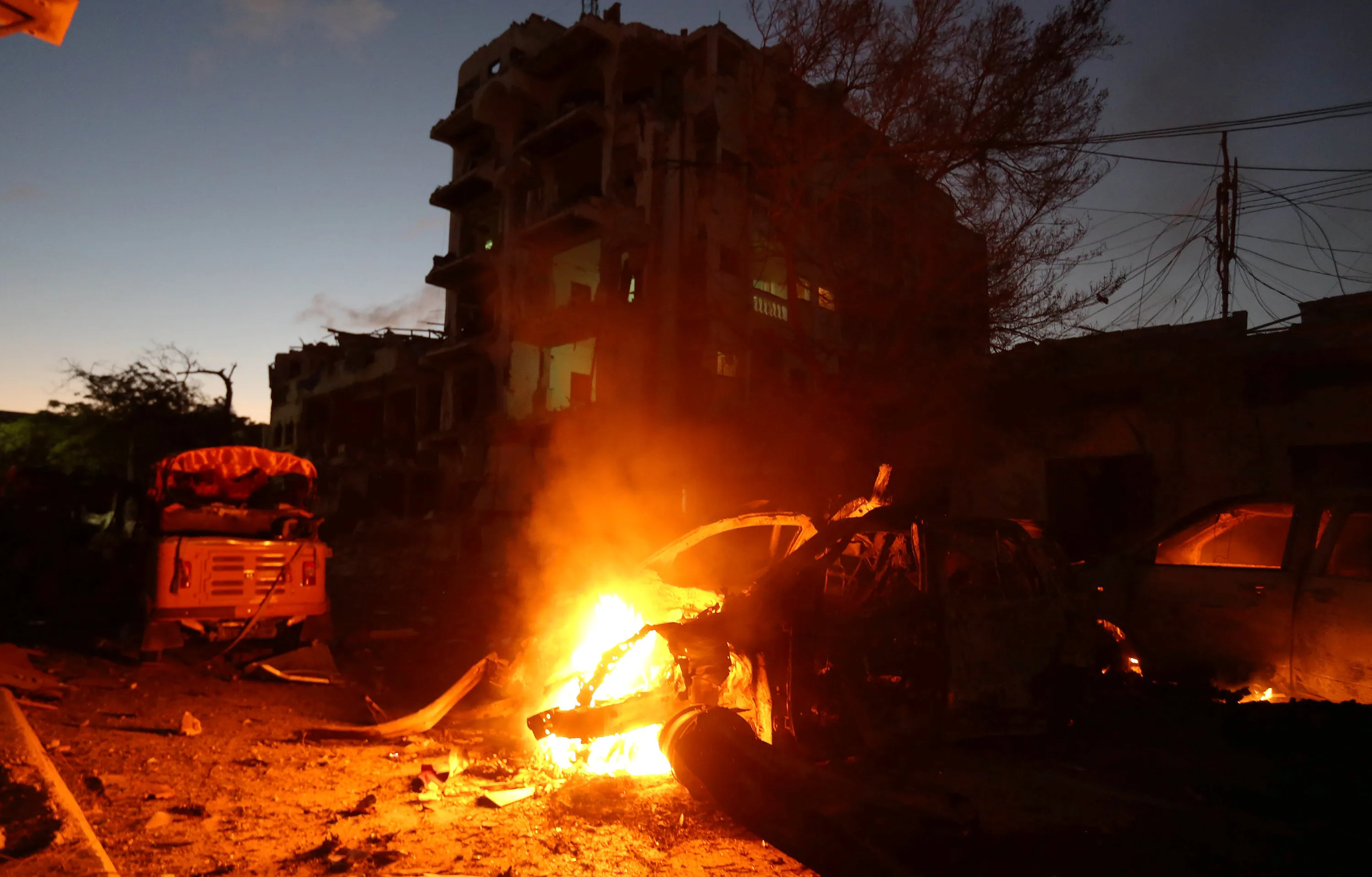 A vehicle burns at the scene of a suicide car bombing outside Hotel Ambassador on Maka Al Mukaram Road in Somalia's capital Mogadishu, June 1, 2016. (Photo by Feisal Omar/Reuters)