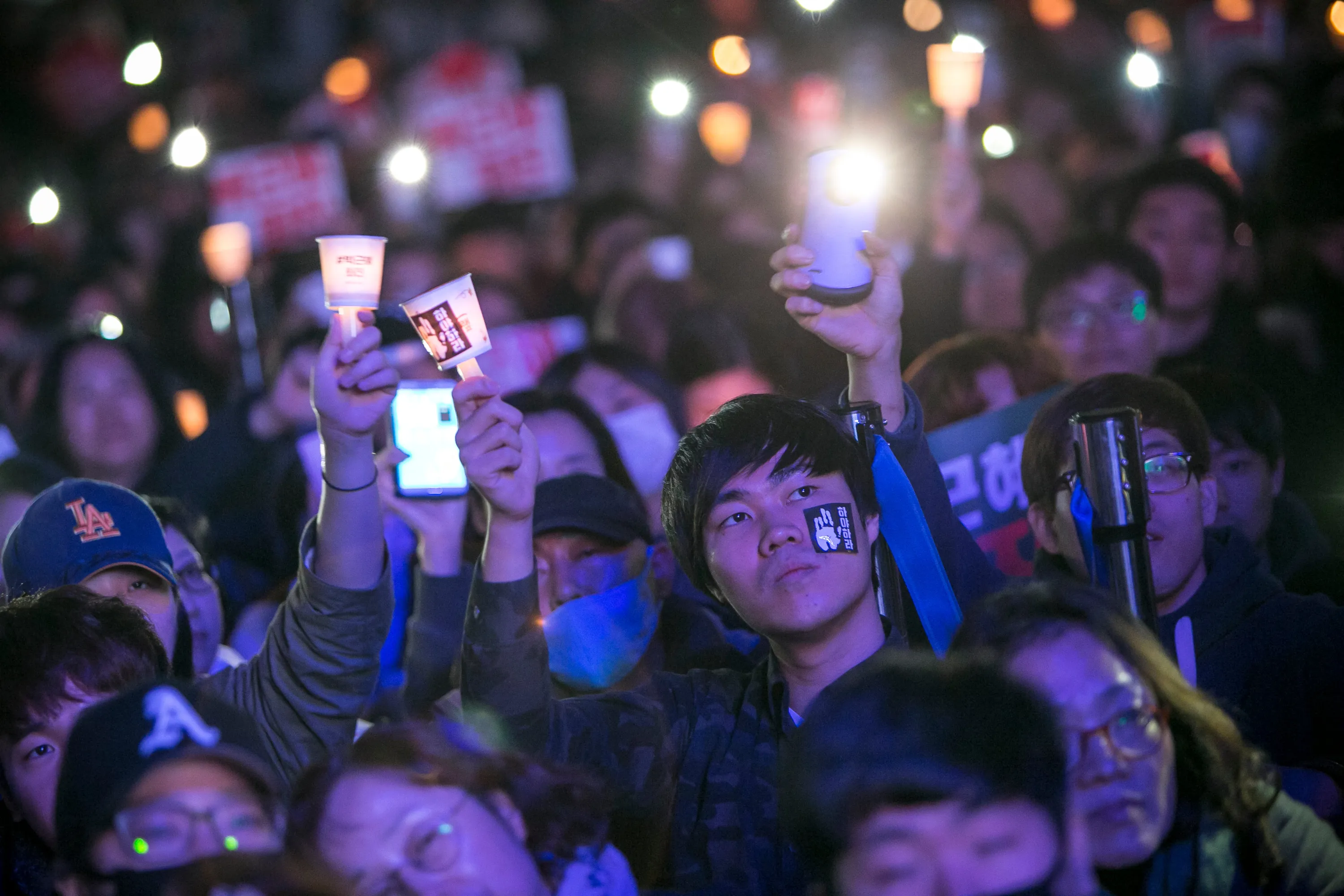 Thousands of South Koreans take to the streets in the city centre to participate in a candlelight rally to demand President Park Geun-Hye to step down on November 12, 2016 in Seoul, South Korea. (Photo by Jean Chung/Getty Images)