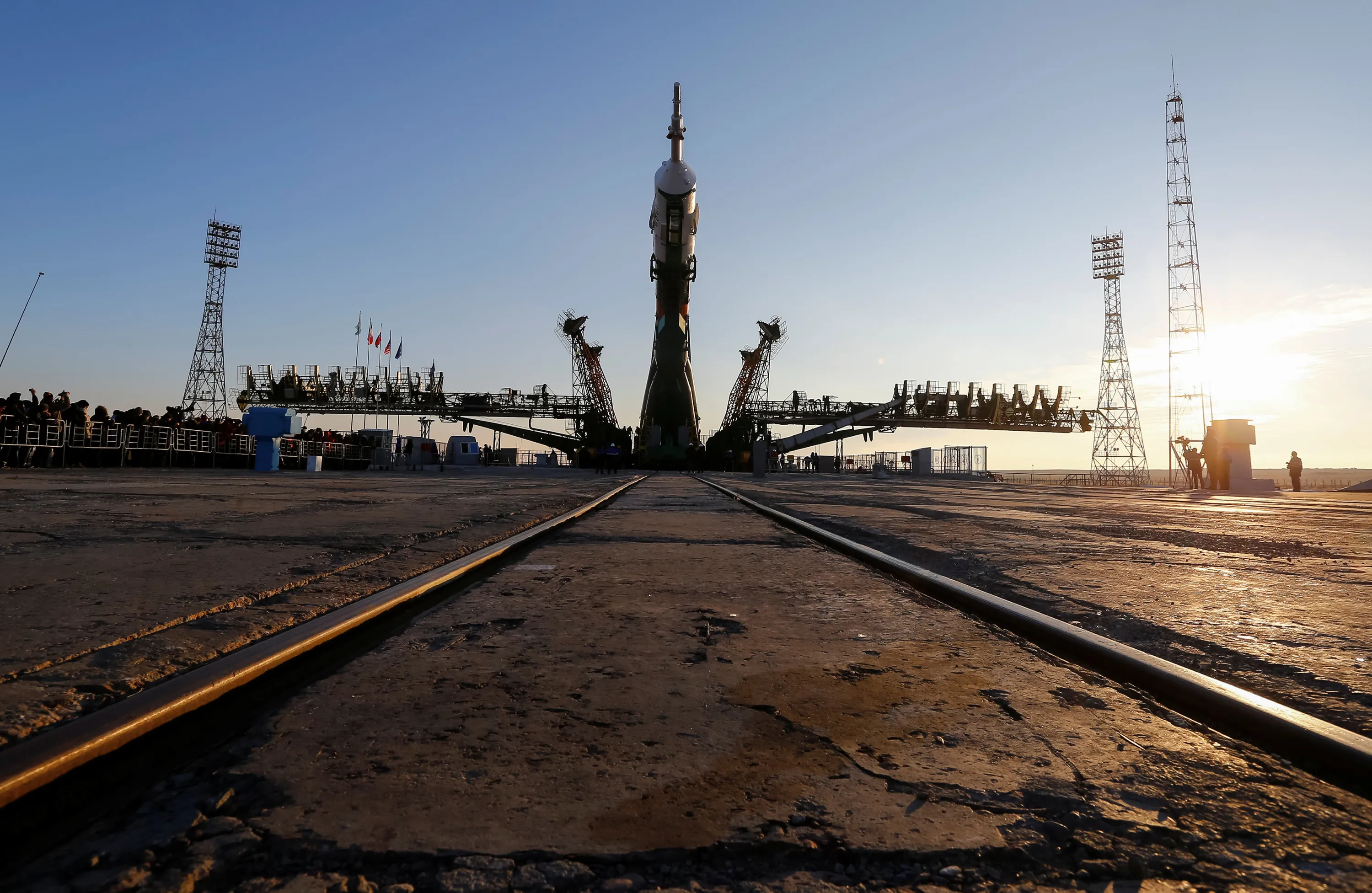 The Soyuz MS-03 spacecraft for the next International Space Station (ISS) crew of Peggy Whitson of the U.S., Oleg Novitskiy of Russia and Thomas Pesquet of France, is lifted on the launchpad ahead of its upcoming launch, at the Baikonur cosmodrome in Kazakhstan, November 14, 2016. (Photo by Shamil Zhumatov/Reuters)