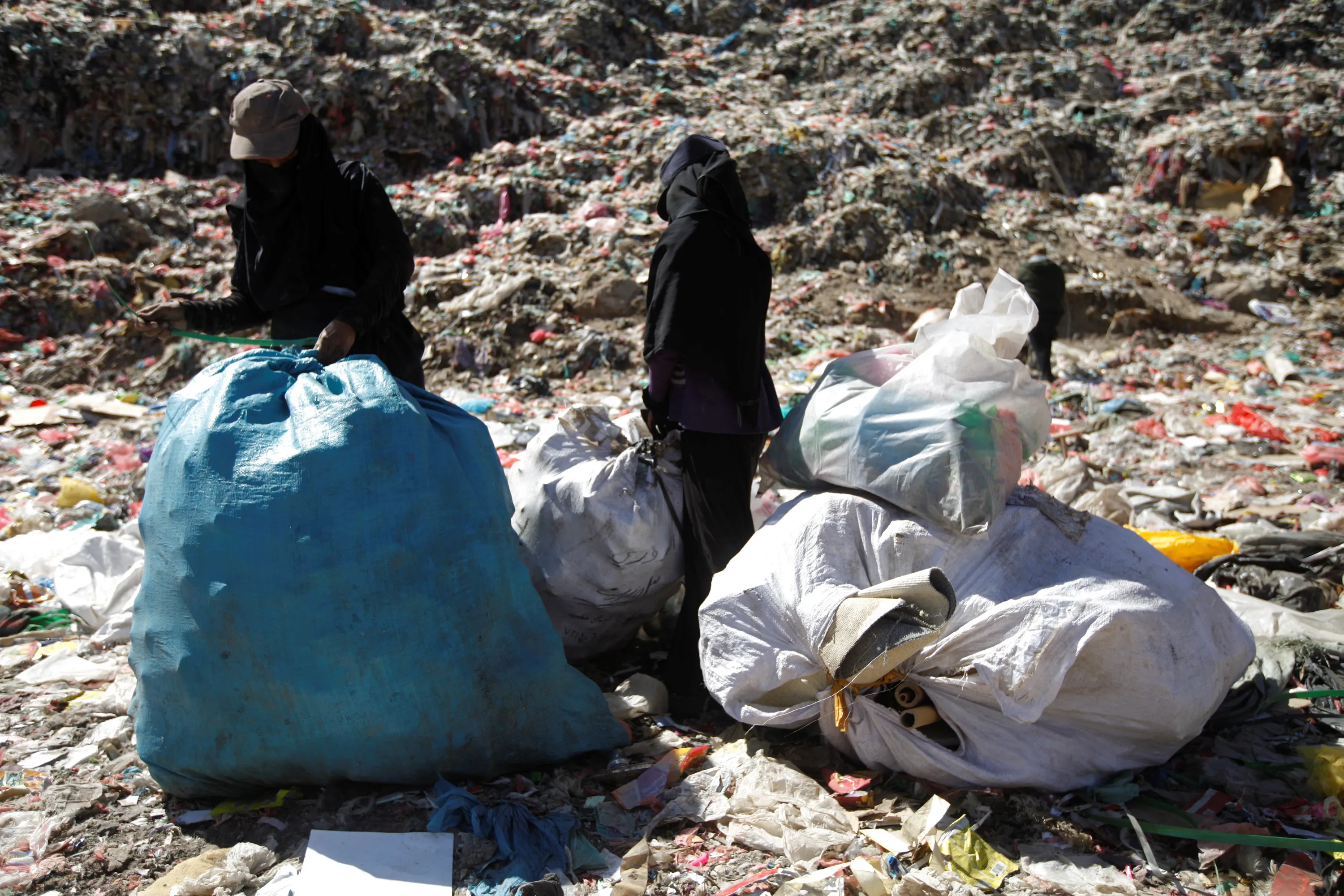 A woman with her daughter collect recyclable items at a rubbish dump site on the outskirts of Sanaa, Yemen November 16, 2016. (Photo by Mohamed al-Sayaghi/Reuters)