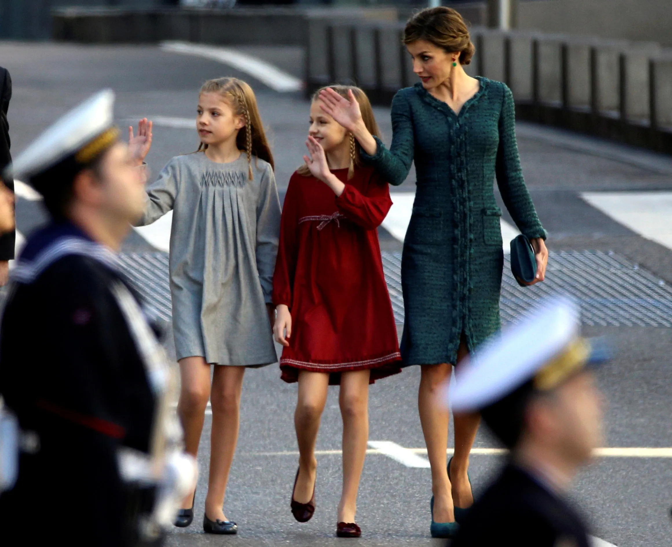 Spain's Princess Sofia, Princess Leonor and Queen Letizia (L-R) wave outside Parliament before a ceremony to inaugurate the XII Legislature in Madrid, Spain November 17, 2016. (Photo by Sergio Perez/Reuters)