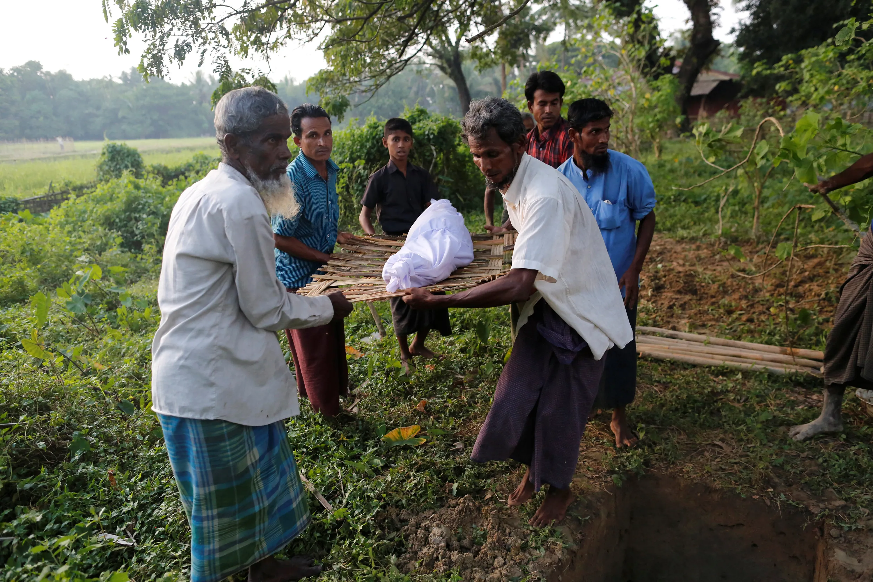Men carry the body of an 11-year-old boy, who died due to illness, during his burial at a Rohingya village outside Maugndaw in Rakhine state, Myanmar October 26, 2016. (Photo by Soe Zeya Tun/Reuters)