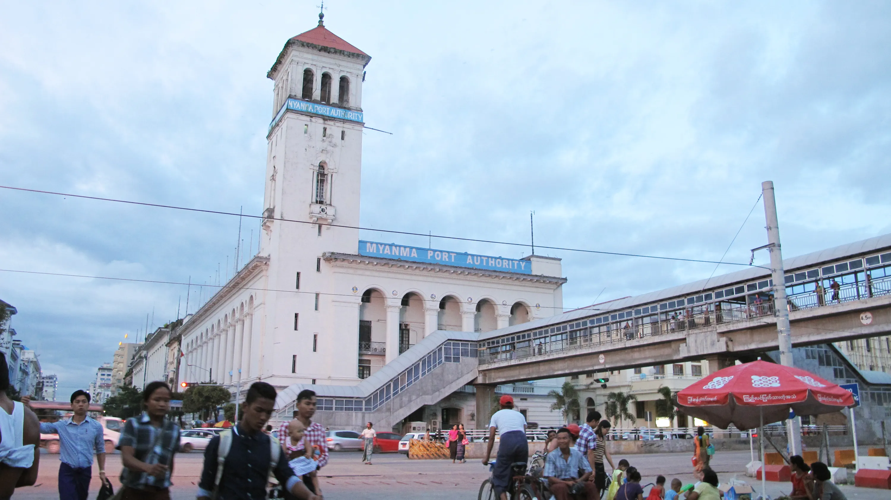 In this October 1, 2016 photo, people walk near the Myanmar Port Authority building in Yangon, Myanmar. (Photo by Elaine Kurtenbach/AP Photo)