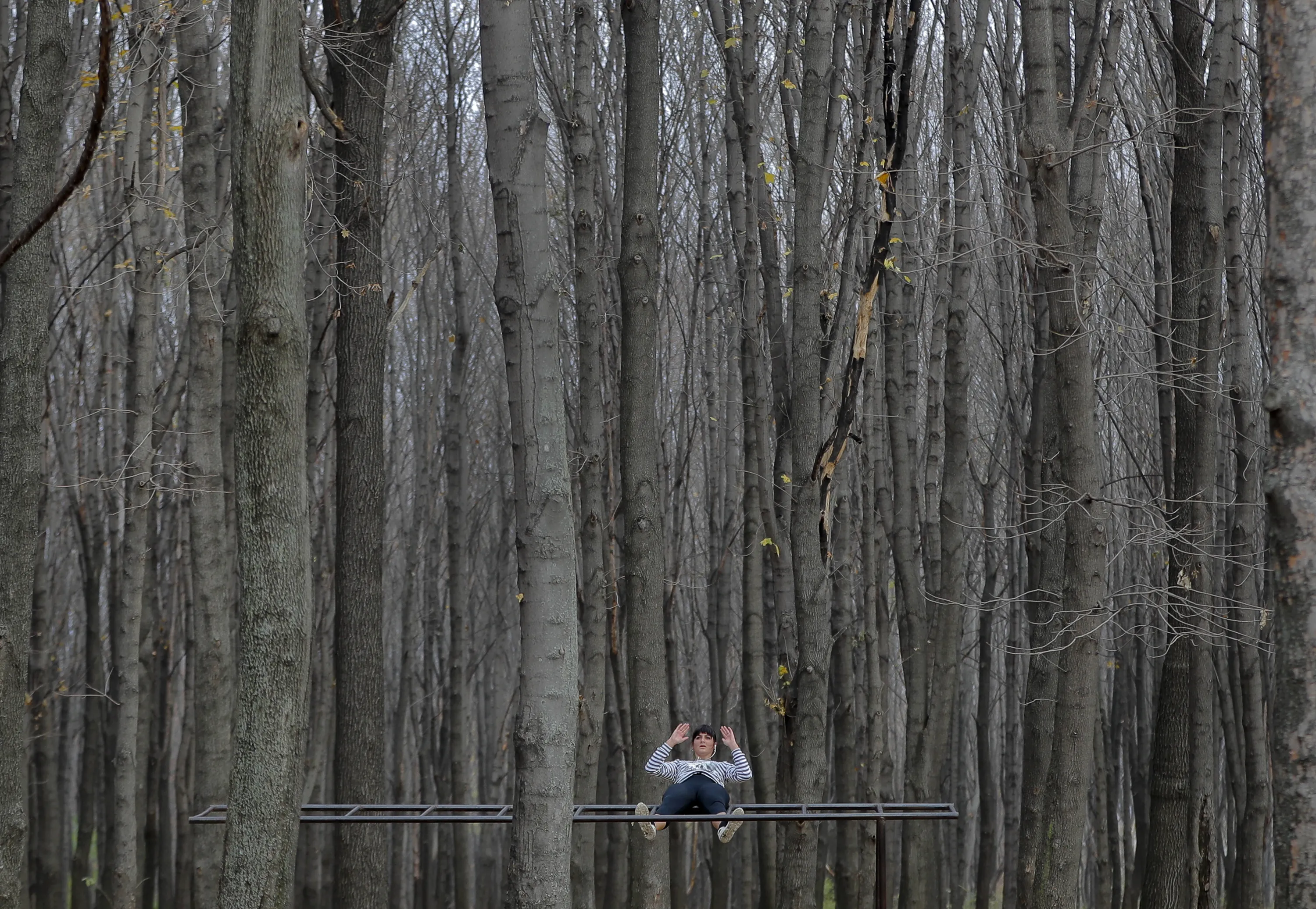 A girl exercises in a park in Chisinau, Moldova, Saturday, November 12, 2016. Moldovans will directly elect their president on Sunday for the first time in 20 years. The favorite is Socialist Igor Dodon, who wants the ex-Soviet republic to return to the Russian orbit, while rival Maia Sandu believes the agricultural nation of 3.5 million, bordering Ukraine and European Union member Romania, would secure a more prosperous future in Europe. (Photo by Vadim Ghirda/AP Photo)