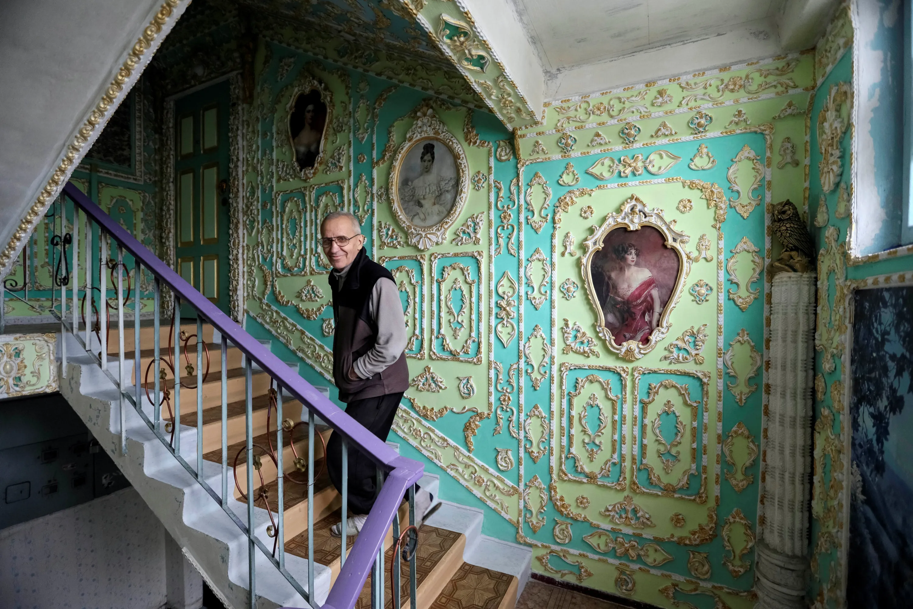 A stairwell is seen in an apartment block that one of its residents, 65-year-old Volodymyr Chayka, has spent the last five years decorating by himself in an elaborate, old-fashioned style, in a residential district of Kiev, Ukraine November 18, 2016. (Photo by Gleb Garanich/Reuters)