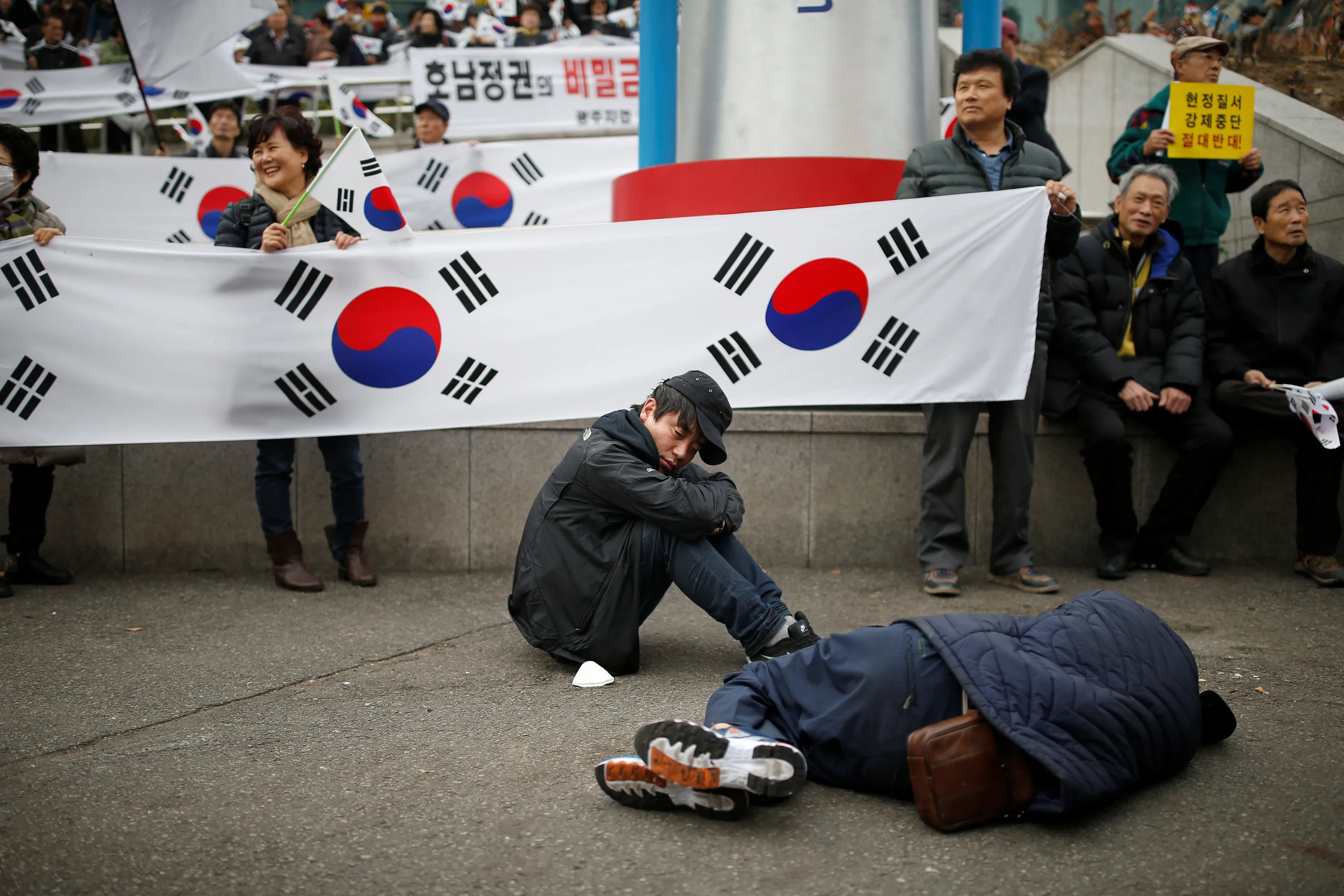 Homeless men nap in front of supporters of South Korean President Park Geun-hye during a rally opposing calls for her resignation, in Seoul, South Korea, November 19, 2016. (Photo by Kim Hong-Ji/Reuters)