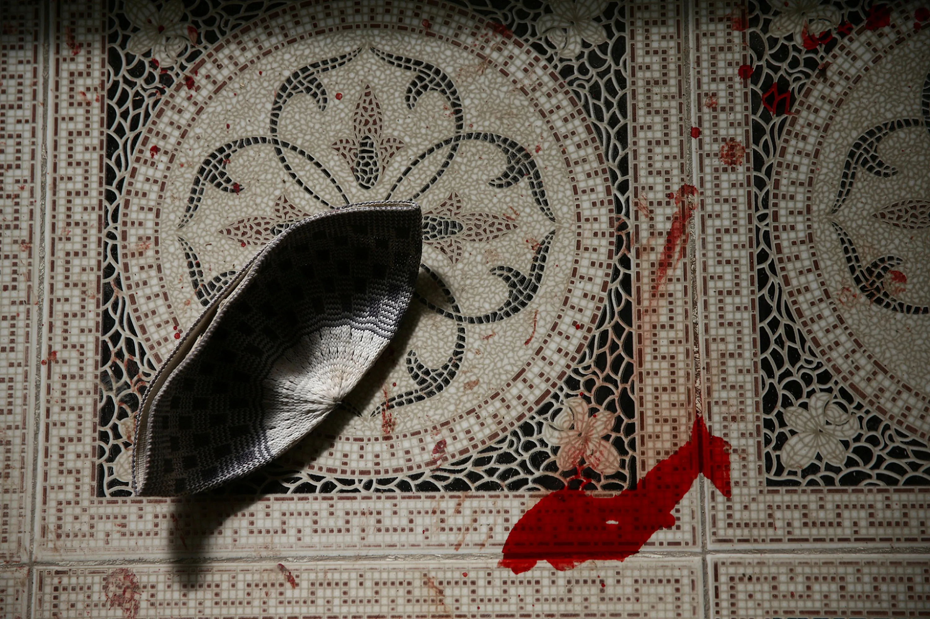 A blood stain is pictured near a hat on the ground after a strike on the rebel held besieged city of Douma, in the eastern Damascus suburb of Ghouta, Syria, November 8, 2016. (Photo by Bassam Khabieh/Reuters)