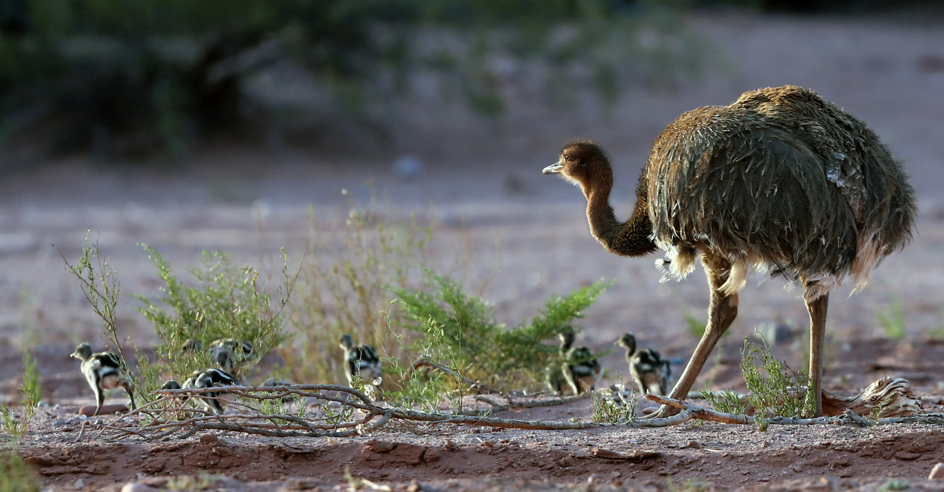 An ostrich and its young are seen at Talampaya National Park in Argentina's province of La Rioja, November 12, 2016. (Photo by Enrique Marcarian/Reuters)