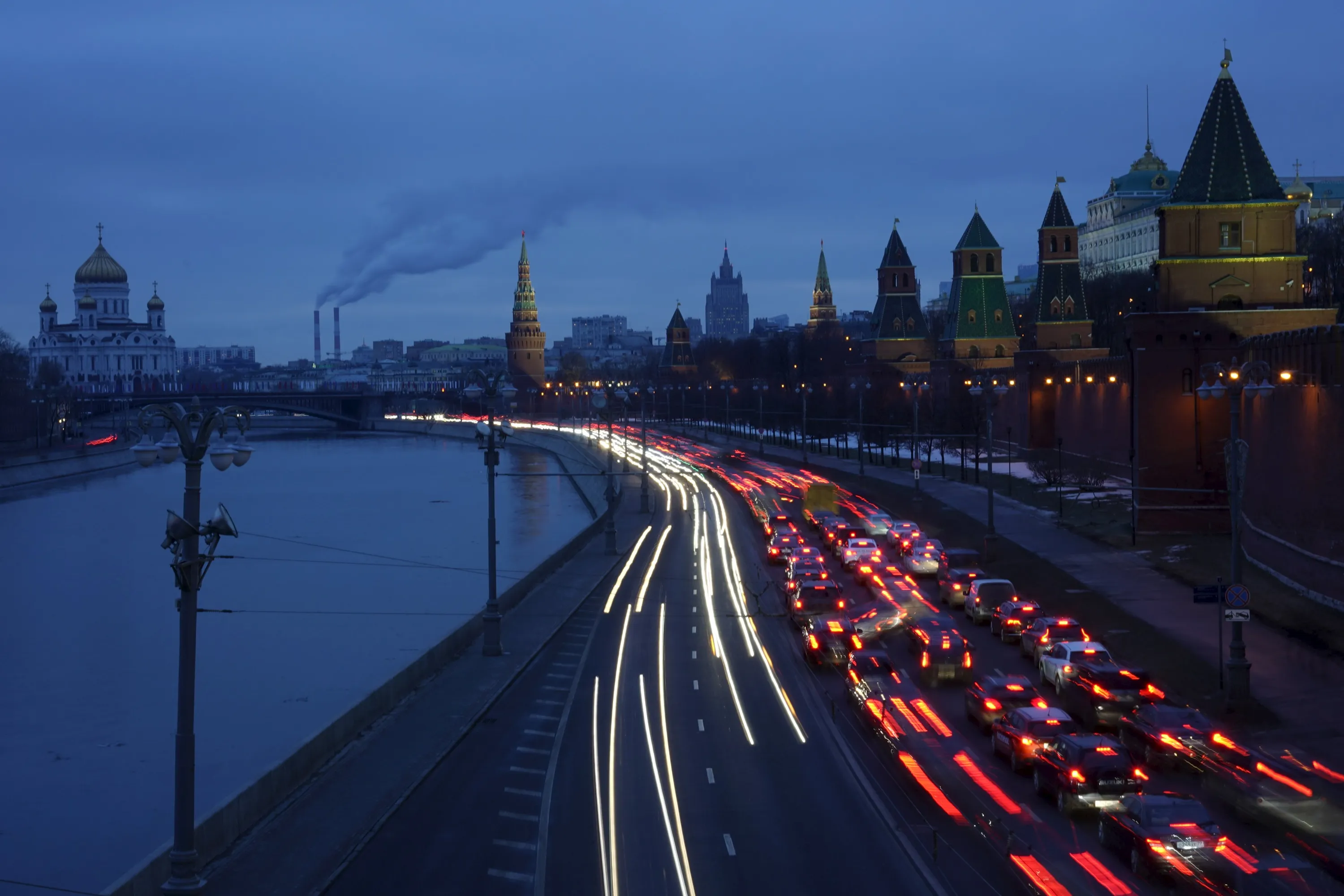 Vehicles drive along an embankment of the Moskva river near the Kremlin, with the Christ the Saviour Cathedral (L) seen in the background, in central Moscow, Russia, February 19, 2016. (Photo by Maxim Zmeyev/Reuters)