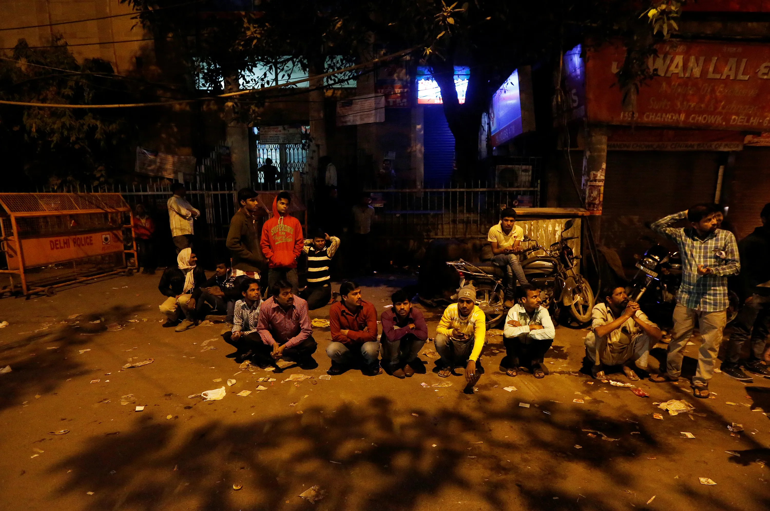 People sit in a queue as they wait for the bank to open to exchange their old high-denomination banknotes in the early hours, in the old quarters of Delhi, India, November 16, 2016. (Photo by Adnan Abidi/Reuters)