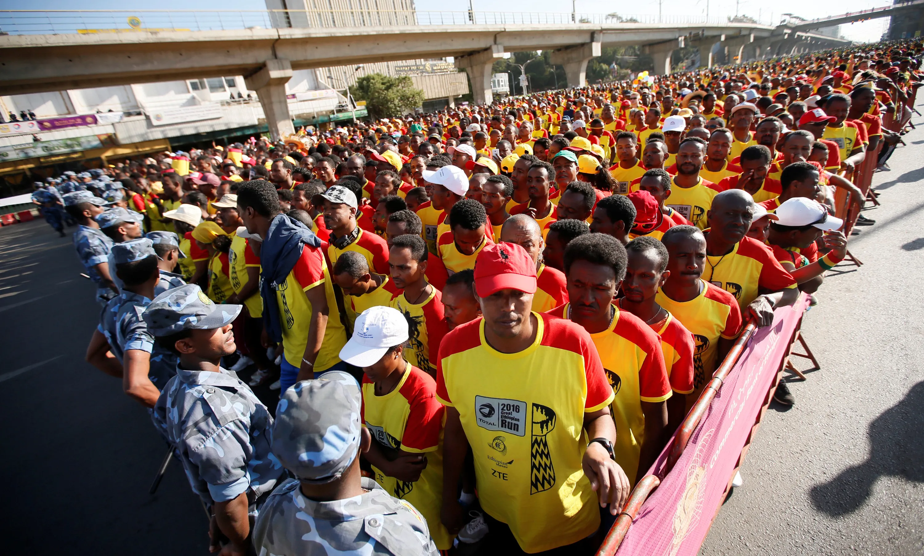 Athletes prepare to participate in the 10km Great Ethiopian Run along the streets of Ethiopia's capital Addis Ababa, November 20, 2016. (Photo by Tiksa Negeri/Reuters)