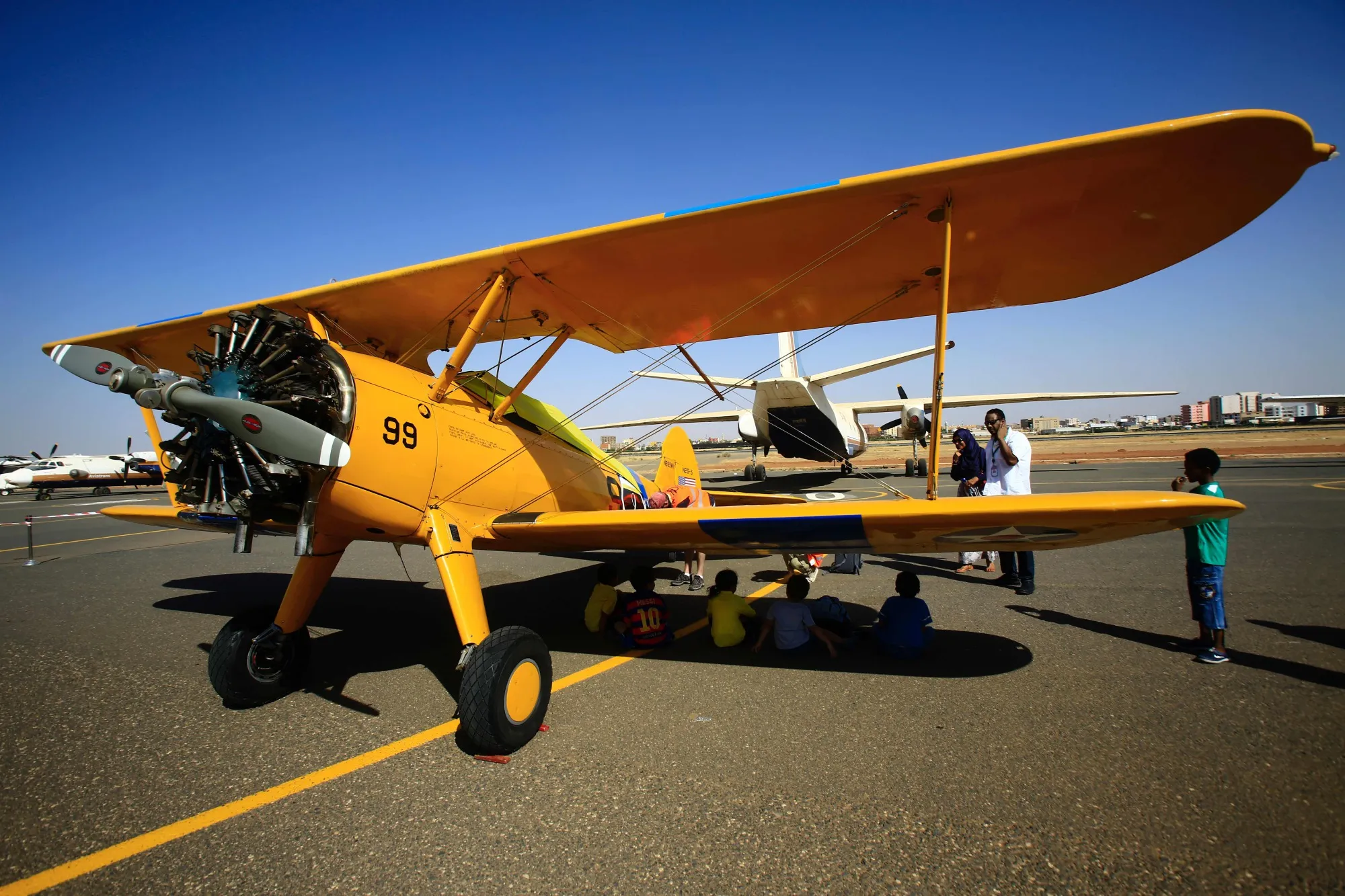 People look at the vintage Boeing-Stearman Model 75 biplane as it sits on the runway on November 20, 2016 in Khartoum airport during the Vintage Air Rally (VAR). A dozen biplanes from the 1920s and 1930s are flying 8,000 miles from Crete to Cape Town in a vintage aviation rally that harks back to the early days of air travel. The pilots will fly along the Nile from Cairo to Khartoum, past the highlands of Ethiopia, down through East Africa past Mount Kilimanjaro, over Victoria Falls, and will end in South Africa. It is the first aviation rally to be granted permission to land at Egypt's Giza pyramids in 50 years, and will put on Sudan's first air show. (Photo by Ashraf Shazly/AFP Photo)