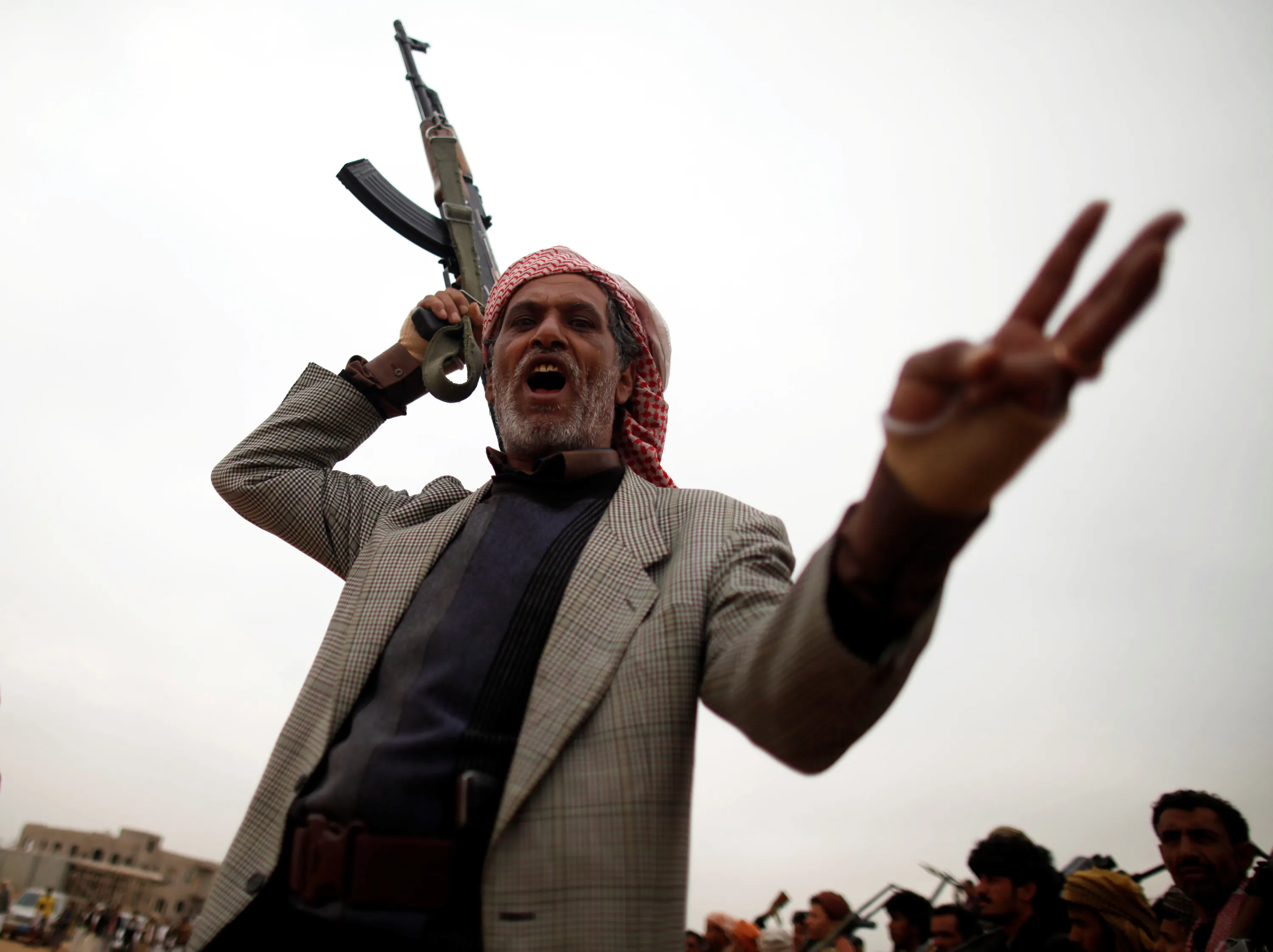 A tribesman reacts during a tribal gathering held to show support to the Houthi movement in Sanaa, Yemen November 10, 2016. (Photo by Khaled Abdullah/Reuters)