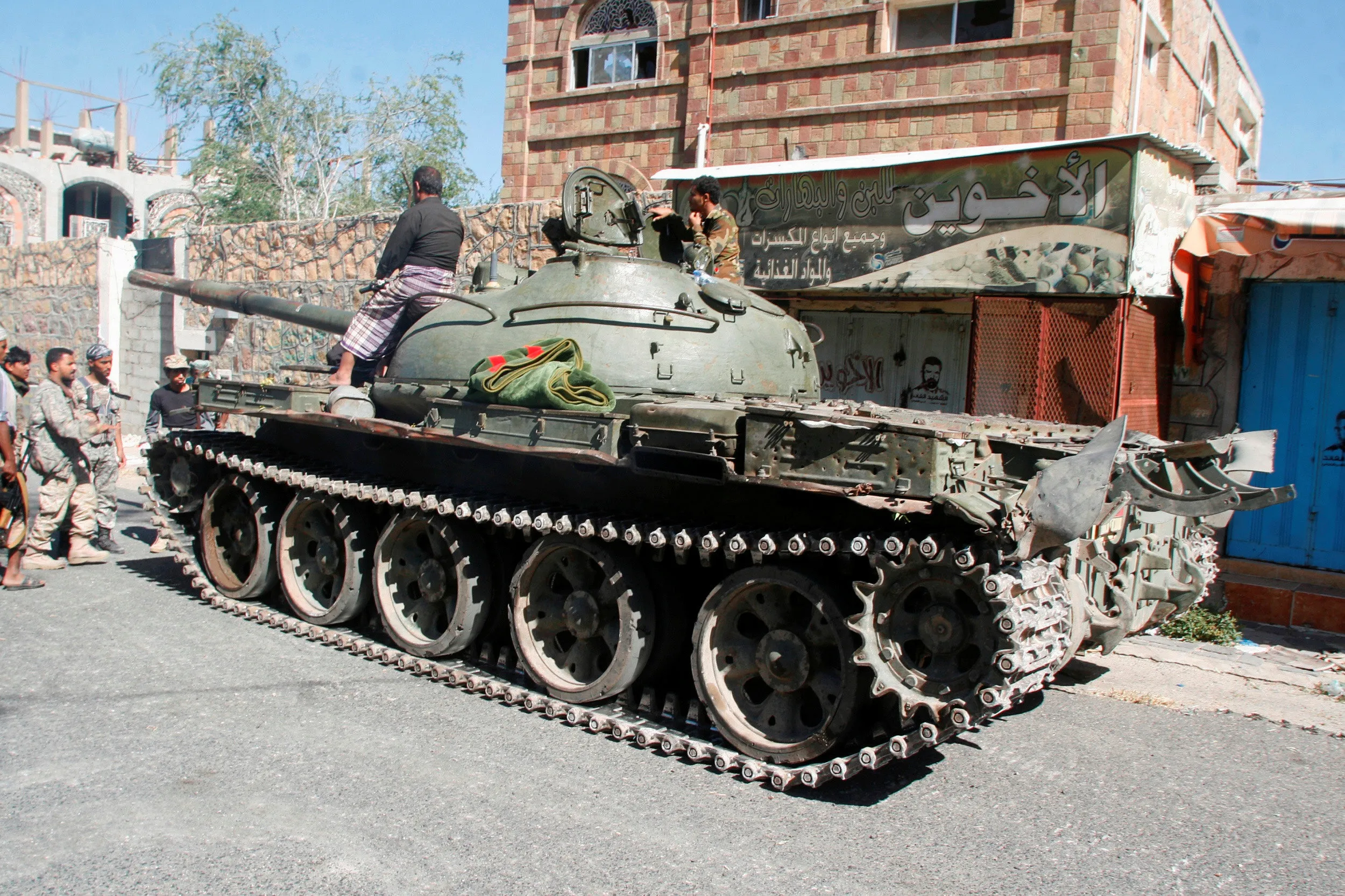 Pro-government fighters gather near a tank in the southwestern city of Taiz, Yemen November 21, 2016. (Photo by Anees Mahyoub/Reuters)