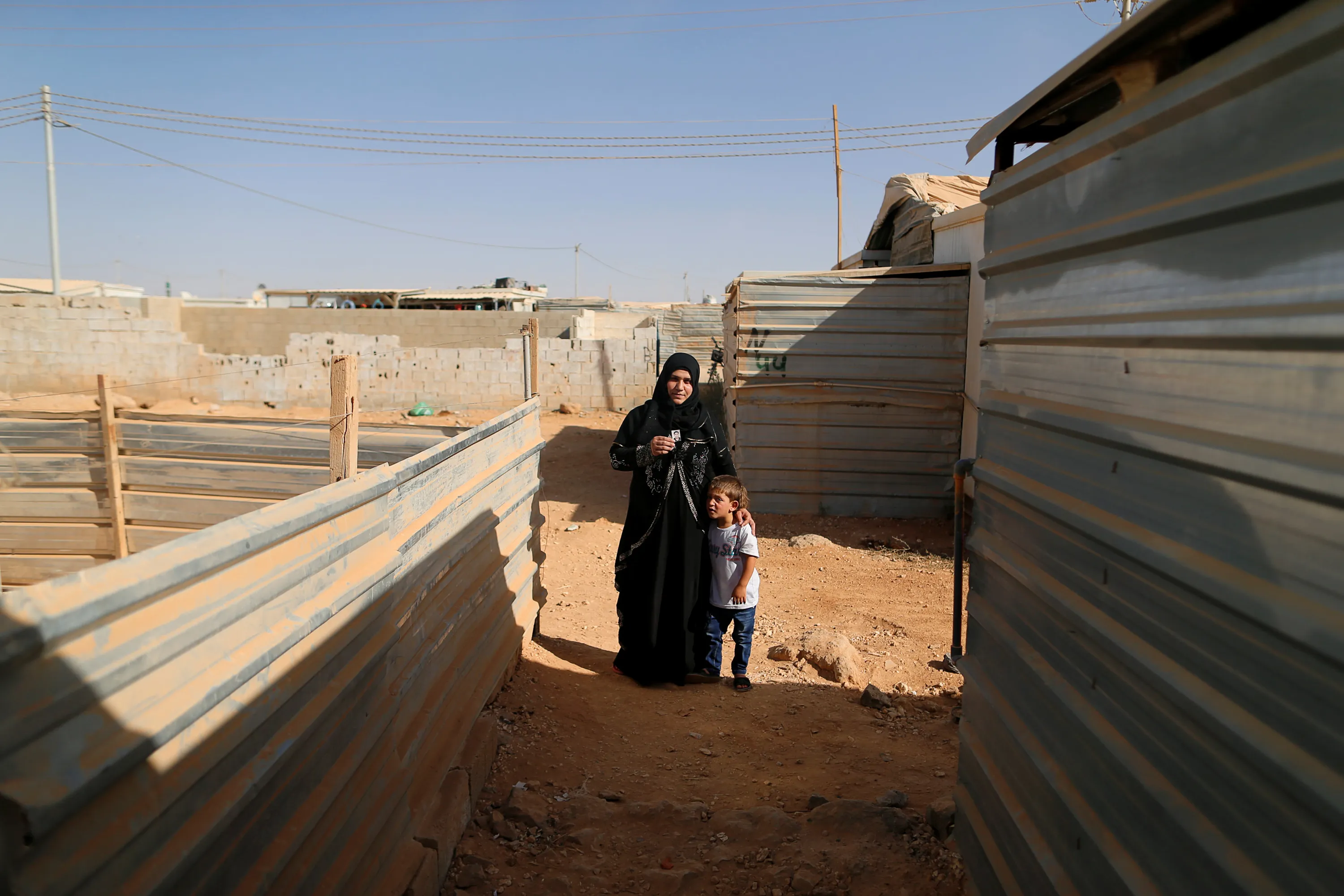 Fadwe Arashed, 25, the Syrian widow of a rebel fighter poses for a photograph with her children, as they hold a photograph of her late husband in Zaatari camp in Jordan October 14, 2016. Arashed's husband was killed during fighting againt forces loyal to Syria's President Bashar al-Assad near Daraa. (Photo by Ammar Awad/Reuters)