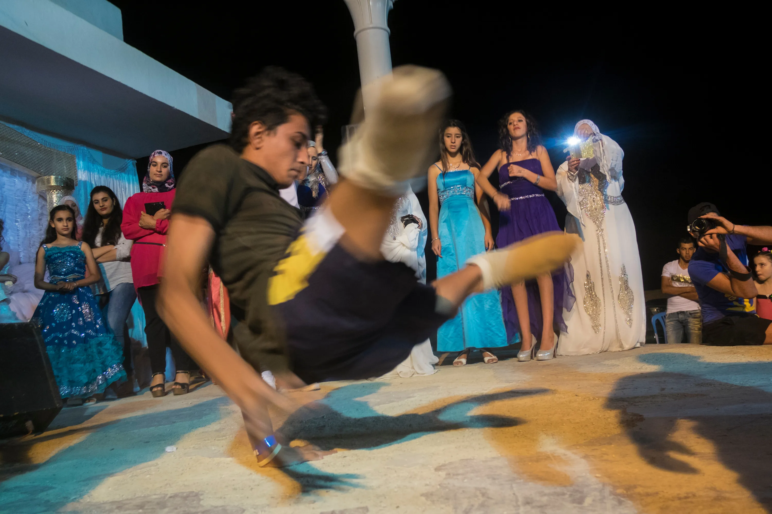 He performs his moves during the wedding celebrations, with his prosthetic limbs removed. (Photo by Yassine Alaoui Ismaili/The Guardian)