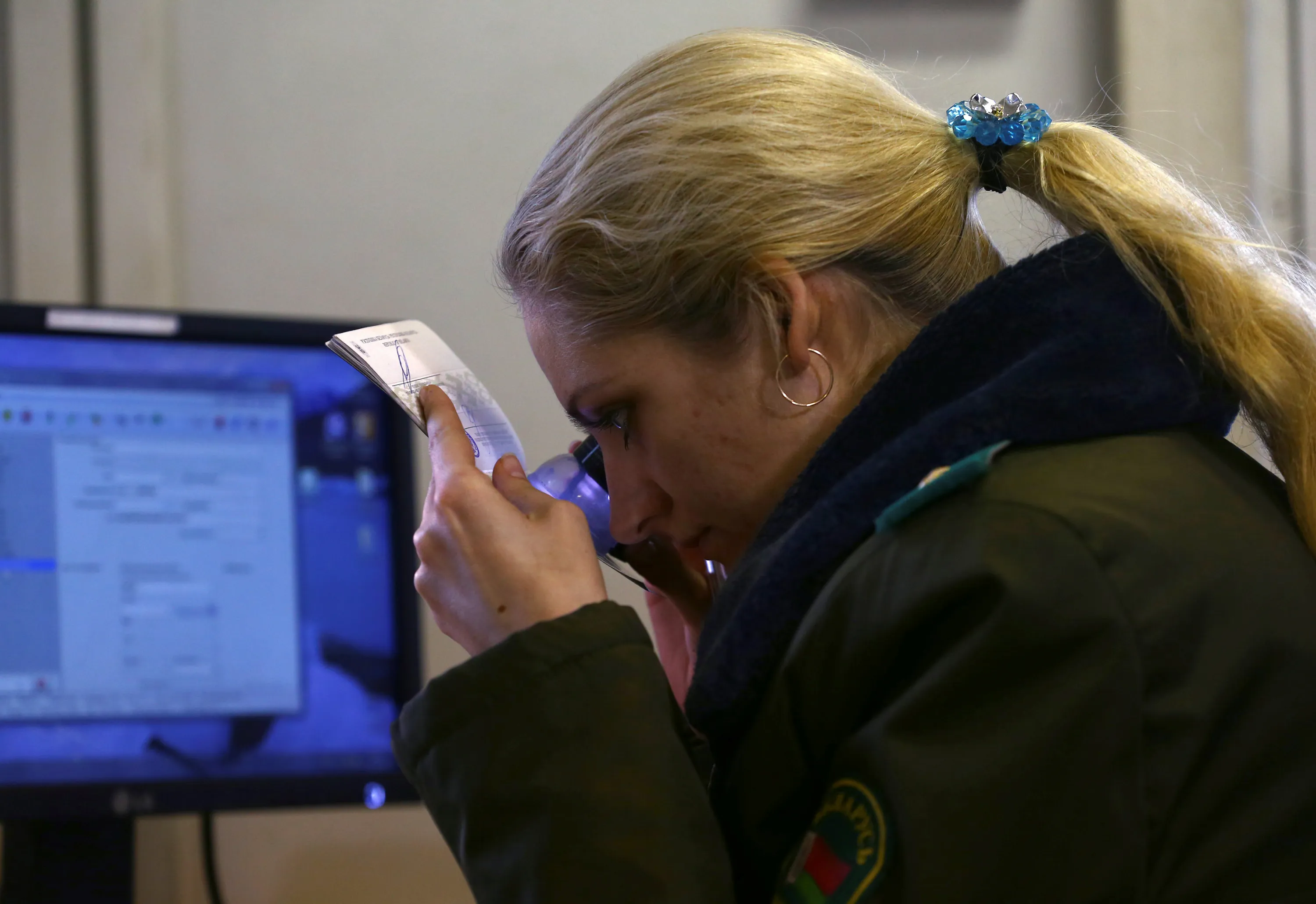 A Belarussian border guard checks a passport with magnifying glass at a checkpoint Kotlovka at the border between Belarus and Lithuania, near the village of Kotlovka, Belarus, November 22, 2016. (Photo by Vasily Fedosenko/Reuters)