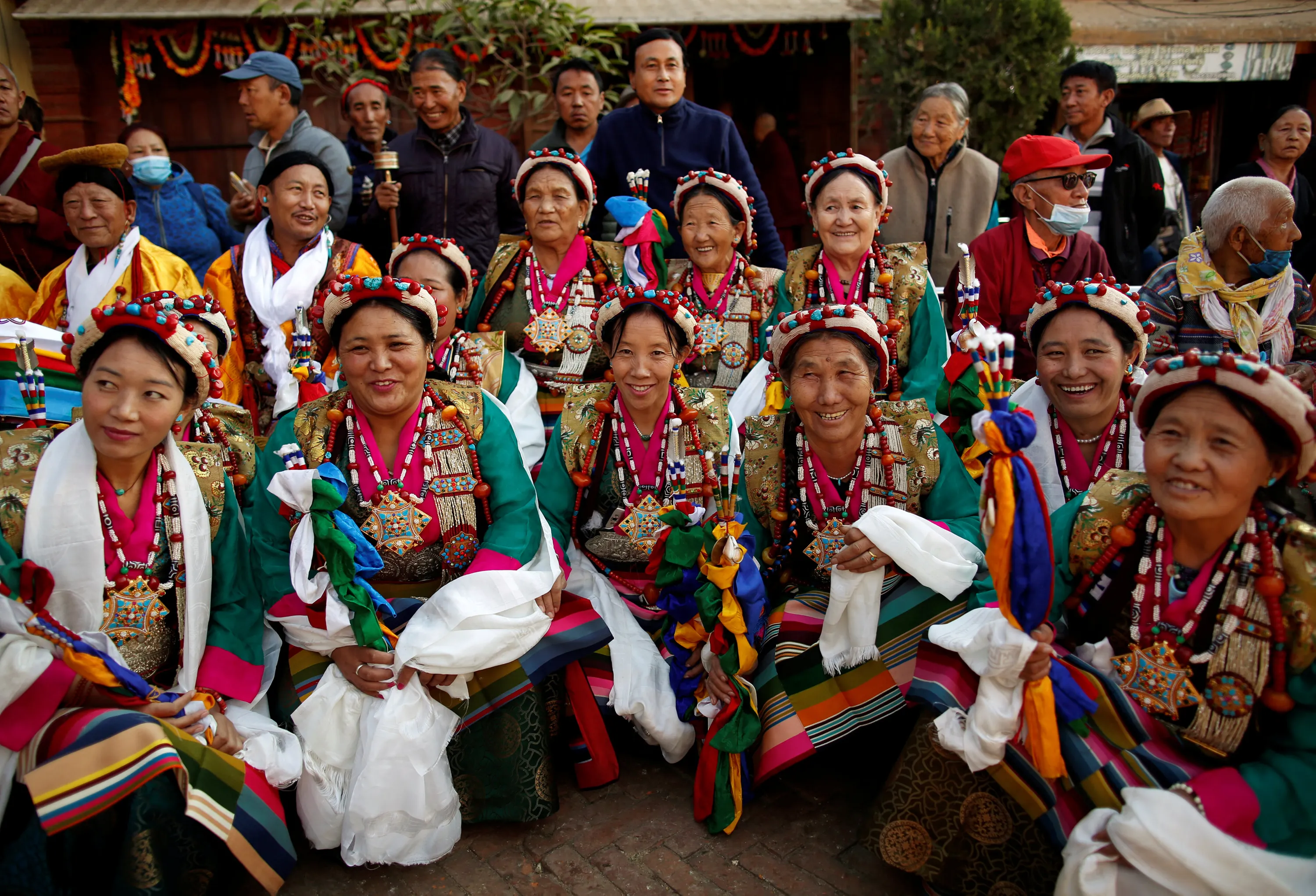 Tibetans in their traditional attire pose for a picture as they take part in prayers to purify the Boudhanath stupa ahead of its opening on November 22, after it was renovated following last year's earthquake in Kathmandu, Nepal November 18, 2016. (Photo by Navesh Chitrakar/Reuters)