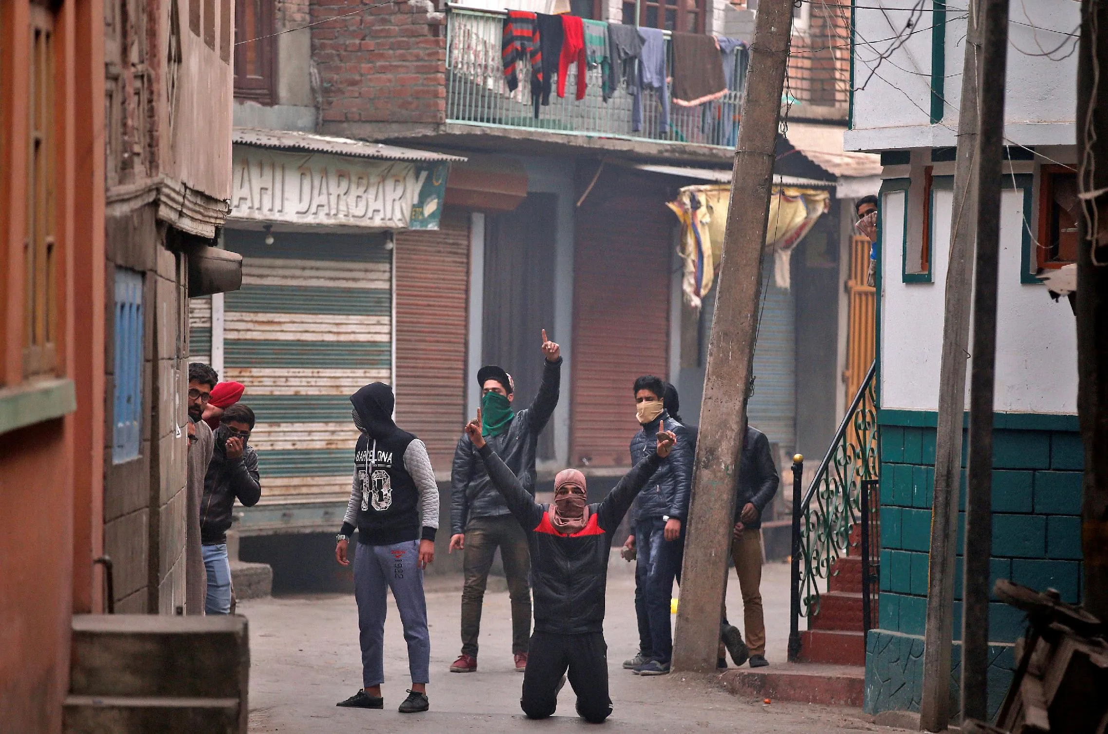 Masked protesters shout pro-freedom slogans during an anti-India protest in Srinagar, November 25, 2016. (Photo by Danish Ismail/Reuters)