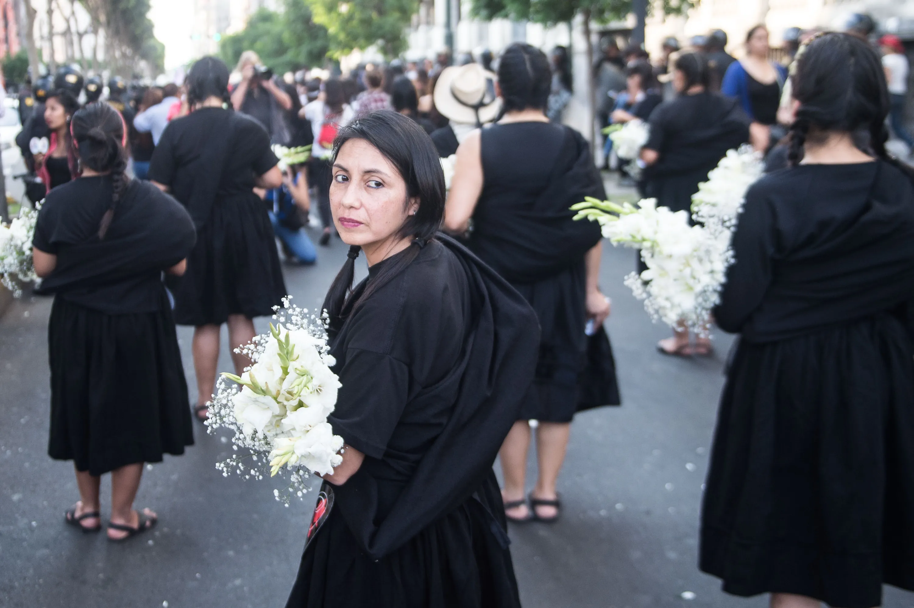 Women demonstrate during a rally to end violence and abuse against women, in Lima, on November 26, 2016 Thousands of women and some men participated in the rally in the Peruvian capital a day after mass marches to condemn horrific violence against women swept Latin America after a series of brutal murders stoked outrage over a long- smoldering problem in the region. (Photo by Ernesto Benavides/AFP Photo)