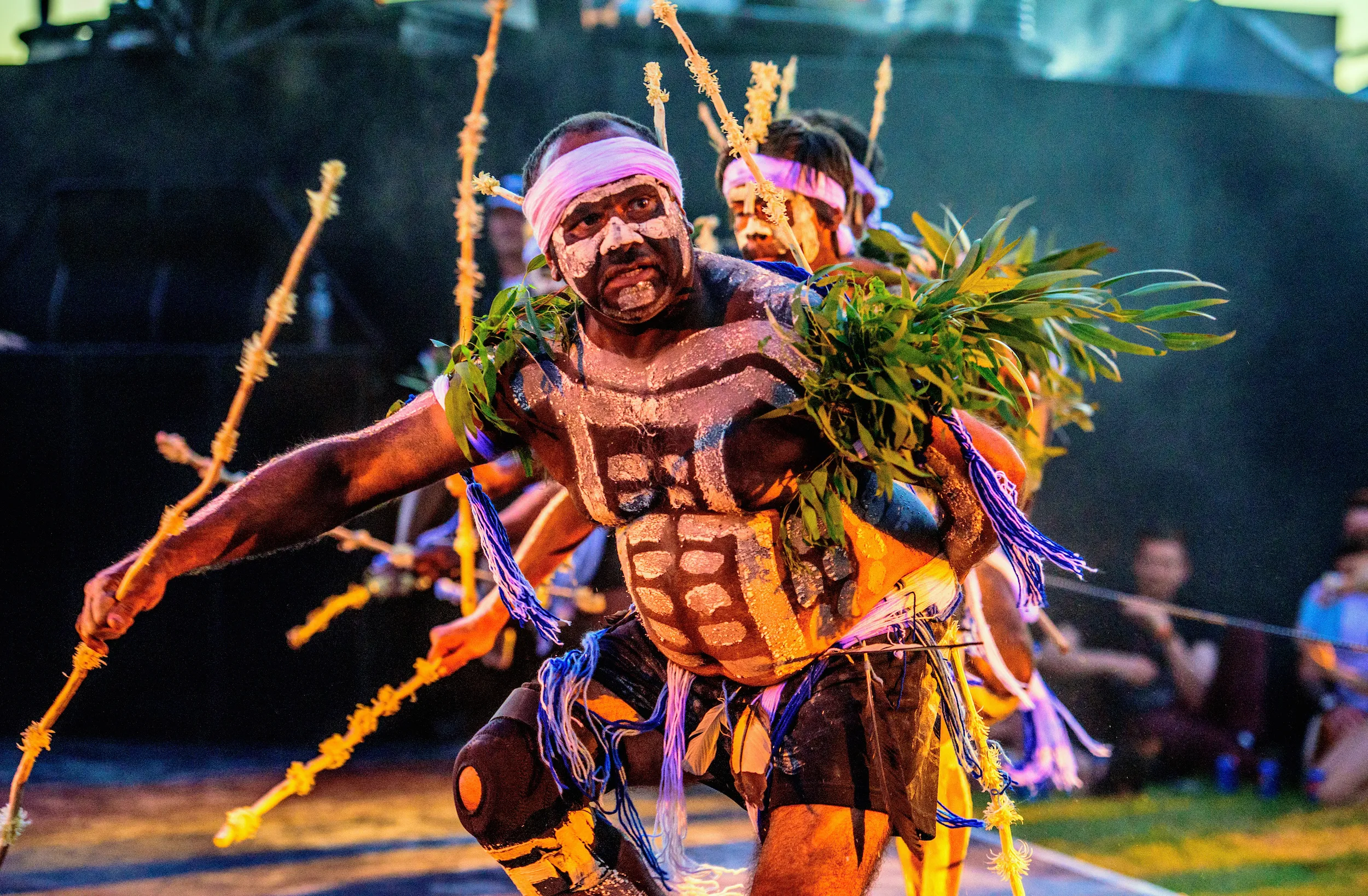 Spectators watch Aboriginal dancers and acrobats perform with a 50-tonne Arcadia spider, constructed from used repurposed military hardware, during a laser and pyrotechnics show in Perth, Australia, made available to Reuters on November 27, 2016. (Photo by Travis Hayto/Reuters//Courtesy of Grayling PR)