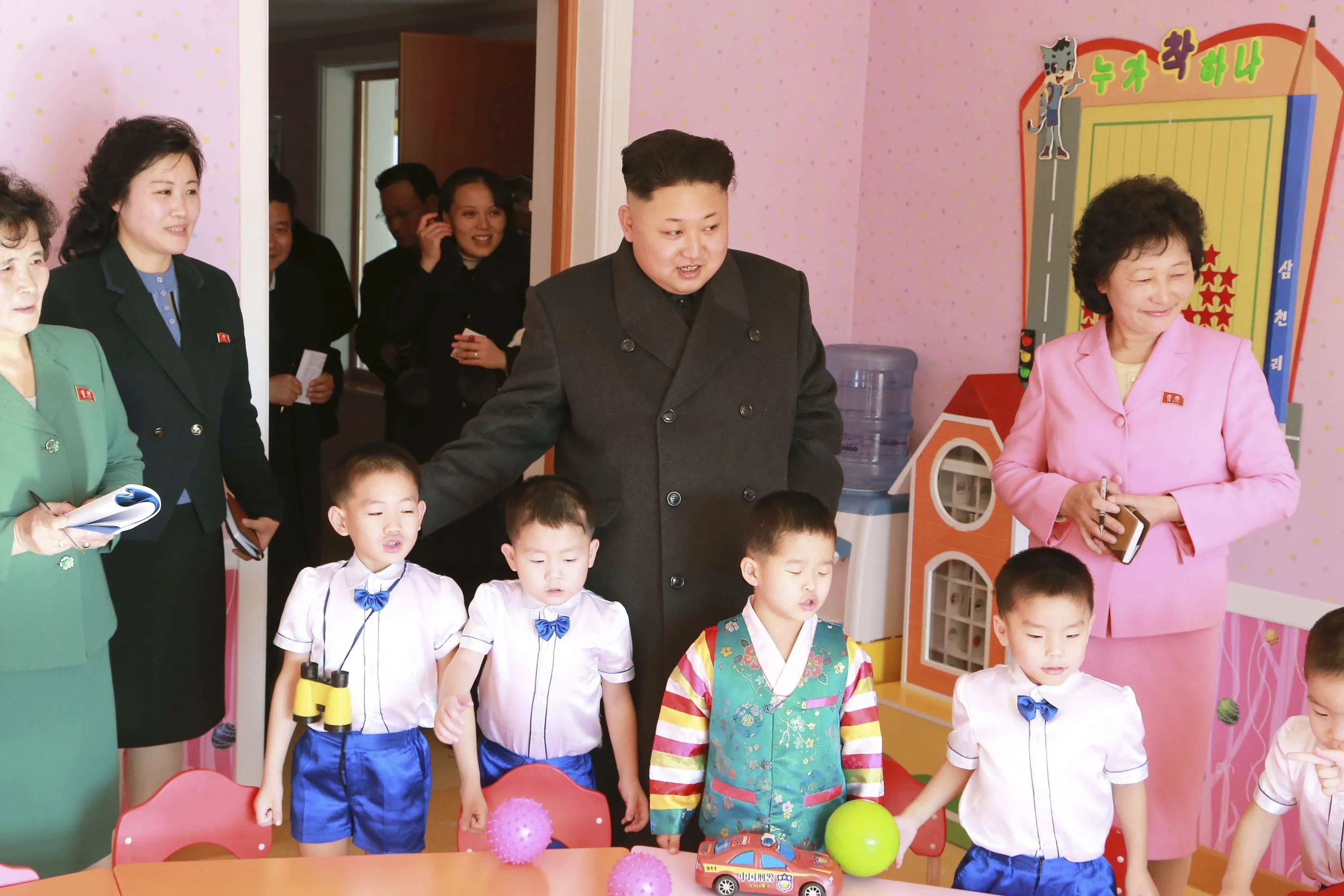 North Korean leader Kim Jong Un (C) poses for a picture with children during a visit to the Pyongyang Baby Home and Orphanage on New Year's Day in this photo released by North Korea's Korean Central News Agency (KCNA) in Pyongyang January 2, 2015. REUTERS/KCNA (NORTH KOREA - Tags: POLITICS)