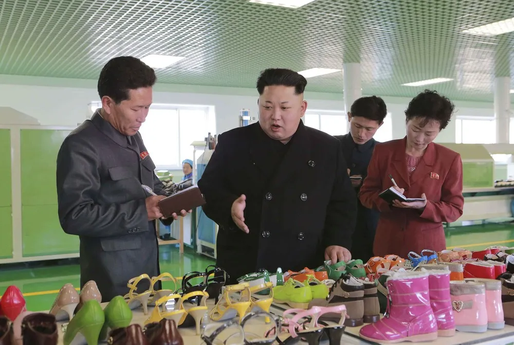 North Korean leader Kim Jong Un (C) gives field guidance during his visit to the Wonsan Shoes Factory in this undated photo released by North Korea's Korean Central News Agency (KCNA) in Pyongyang January 31, 2015. REUTERS/KCNA (NORTH KOREA - Tags: POLITICS) ATTENTION EDITORS - THIS PICTURE WAS PROVIDED BY A THIRD PARTY. REUTERS IS UNABLE TO INDEPENDENTLY VERIFY THE AUTHENTICITY, CONTENT, LOCATION OR DATE OF THIS IMAGE. FOR EDITORIAL USE ONLY. NOT FOR SALE FOR MARKETING OR ADVERTISING CAMPAIGNS. THIS PICTURE IS DISTRIBUTED EXACTLY AS RECEIVED BY REUTERS, AS A SERVICE TO CLIENTS. NO THIRD PARTY SALES. NOT FOR USE BY REUTERS THIRD PARTY DISTRIBUTORS. SOUTH KOREA OUT. NO COMMERCIAL OR EDITORIAL SALES IN SOUTH KOREA