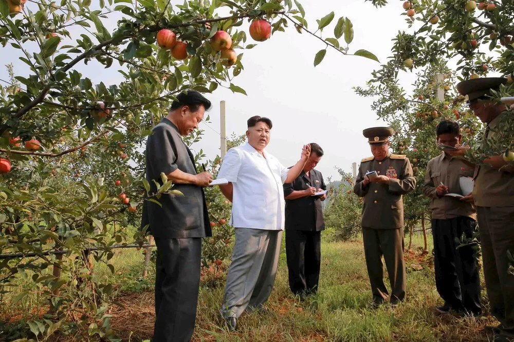 North Korean leader Kim Jong Un gives field guidance to the Taedonggang Combined Fruit Farm in this undated photo released by North Korea's Korean Central News Agency (KCNA) in Pyongyang August 19, 2015. REUTERS/KCNA ATTENTION EDITORS - THIS PICTURE WAS PROVIDED BY A THIRD PARTY. REUTERS IS UNABLE TO INDEPENDENTLY VERIFY THE AUTHENTICITY, CONTENT, LOCATION OR DATE OF THIS IMAGE. FOR EDITORIAL USE ONLY. NOT FOR SALE FOR MARKETING OR ADVERTISING CAMPAIGNS. THIS PICTURE IS DISTRIBUTED EXACTLY AS RECEIVED BY REUTERS, AS A SERVICE TO CLIENTS. NO THIRD PARTY SALES. NOT FOR USE BY REUTERS THIRD PARTY DISTRIBUTORS. SOUTH KOREA OUT. NO COMMERCIAL OR EDITORIAL SALES IN SOUTH KOREA. XX in this undated photo released by North Korea's Korean Central News Agency (KCNA) in Pyongyang XX YY, 20ZZ. REUTERS/KCNA (NORTH KOREA - Tags: POLITICS) ATTENTION EDITORS - THIS PICTURE WAS PROVIDED BY A THIRD PARTY. REUTERS IS UNABLE TO INDEPENDENTLY VERIFY THE AUTHENTICITY, CONTENT, LOCATION OR DATE OF THIS IMAGE. FOR EDITORIAL USE ONLY. NOT FOR SALE FOR MARKETING OR ADVERTISING CAMPAIGNS. THIS PICTURE IS DISTRIBUTED EXACTLY AS RECEIVED BY REUTERS, AS A SERVICE TO CLIENTS. NO THIRD PARTY SALES.