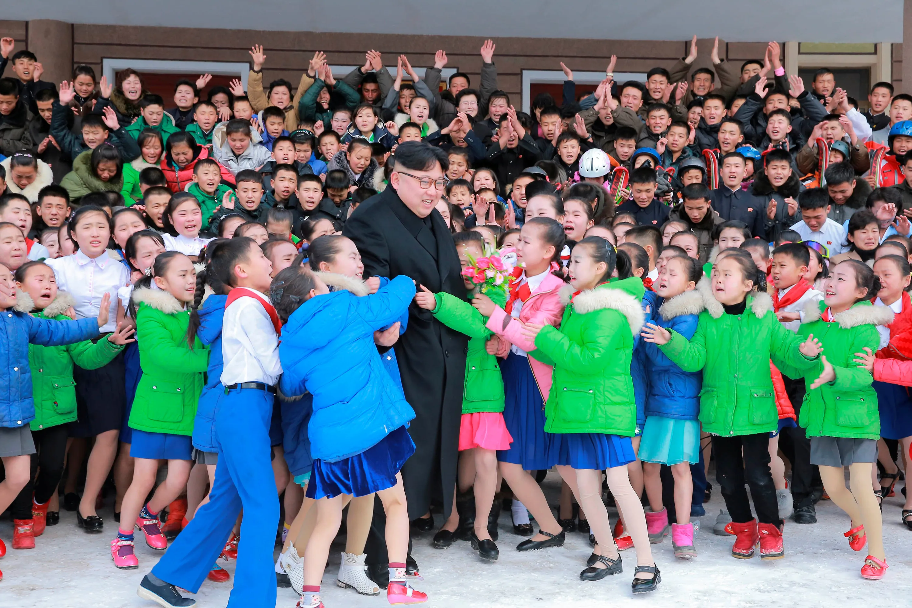 North Korean leader Kim Jong Un is hugged by children during his visit to Samjiyon County in this undated photo released by North Korea's Korean Central News Agency (KCNA) in Pyongyang November 28, 2016. (Photo by Reuters/KCNA)