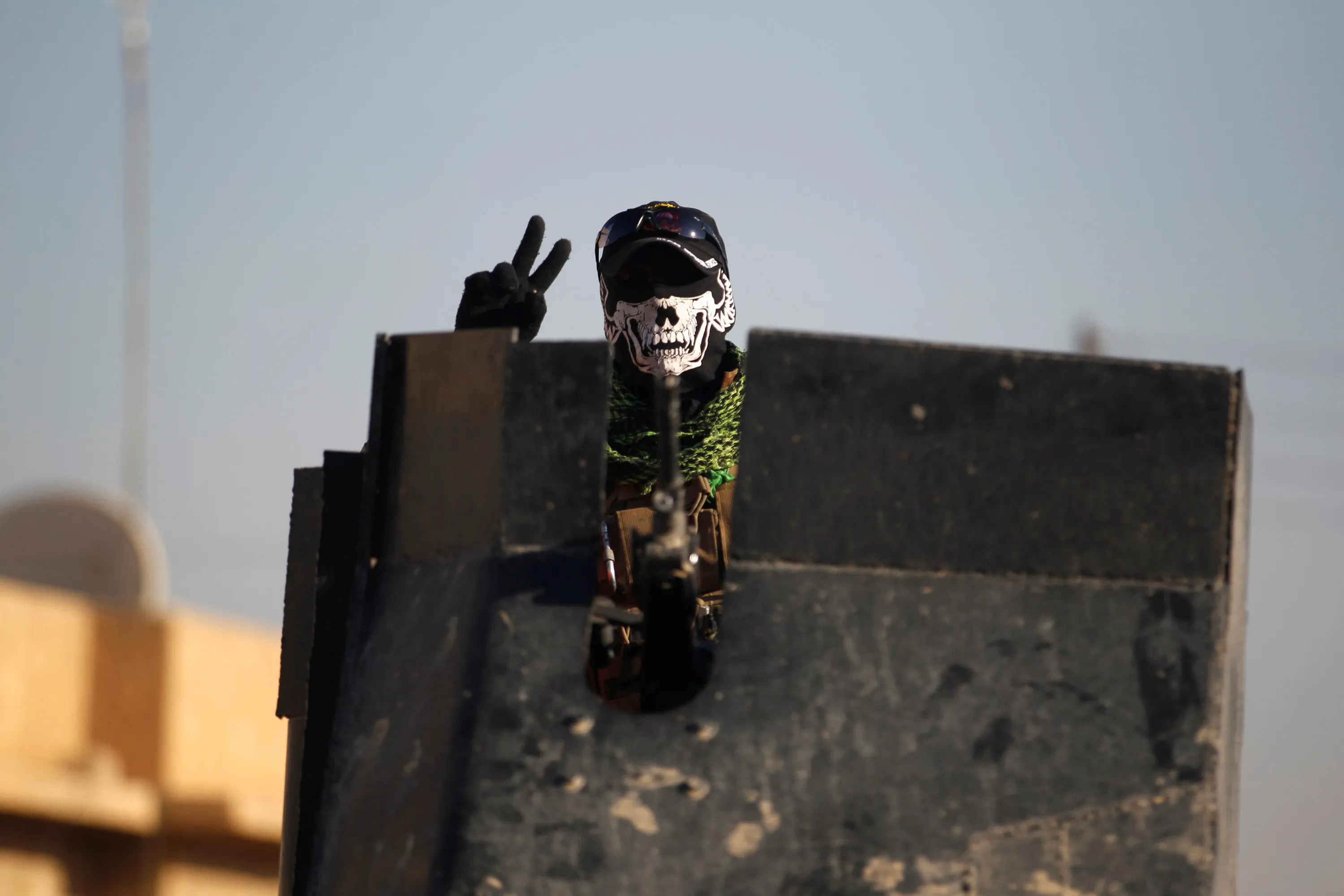 A member of the Iraqi Special Operations Forces (ISOF) gestures during a battle with Islamic State militants in Mosul, Iraq, November 28, 2016. (Photo by Khalid al Mousily/Reuters)