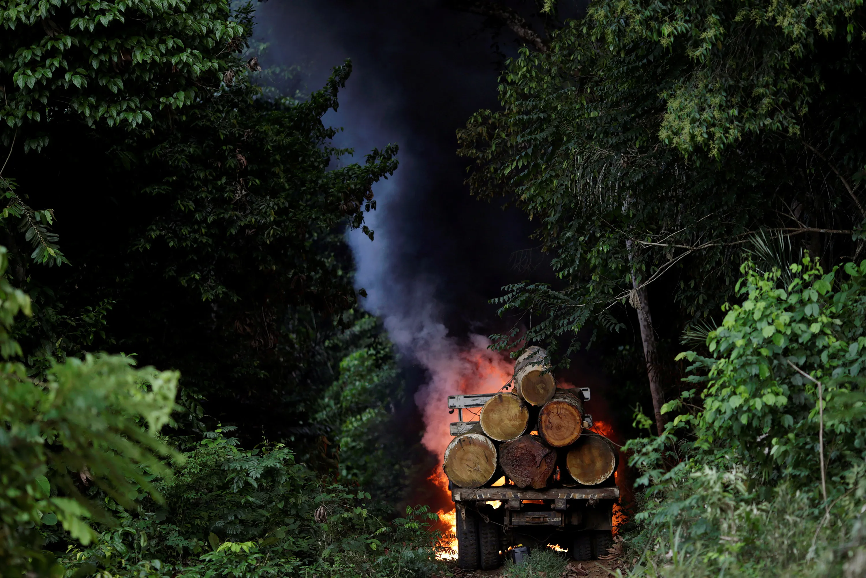 Trucks loaded with tree trunks are burned by agents of the Brazilian Institute for the Environment and Renewable Natural Resources, or Ibama, during an operation to combat illegal mining and logging, in the municipality of Novo Progresso, Para State, northern Brazil, November 11, 2016. (Photo by Ueslei Marcelino/Reuters)