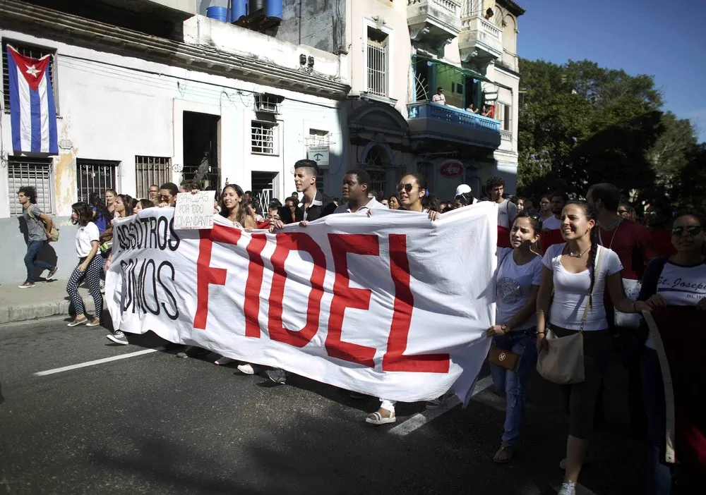 Students of Havana University march to Revolution Square to pay tribute to Cuba's late President Fidel Castro in Havana, Cuba, November 28, 2016. The small sign reads, “Thanks for everything Commander”. (Photo by Alexandre Meneghini/Reuters)