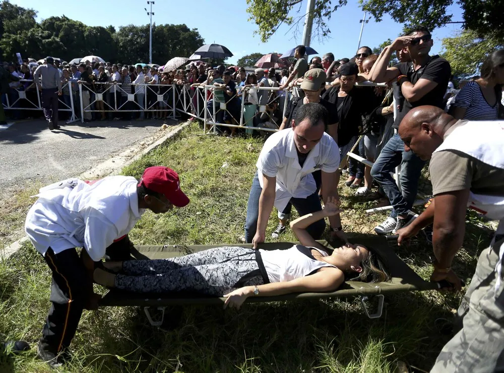 A woman is helped after fainting on the line while waiting to pay tribute to Cuba's late President Fidel Castro in Revolution Square in Havana, Cuba, November 28, 2016. (Photo by Edgard Garrido/Reuters)