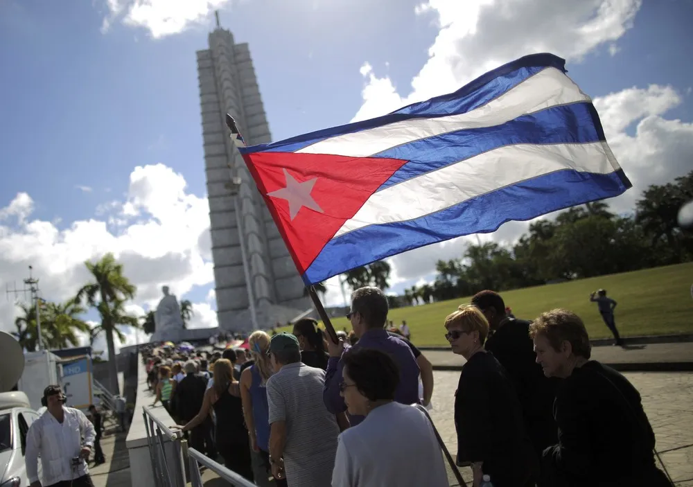 A man carries a Cuban flag as he and others march in tribute to Cuba's late President Fidel Castro at Revolution Square in Havana, Cuba, November 28, 2016. (Photo by Carlos Barria/Reuters)