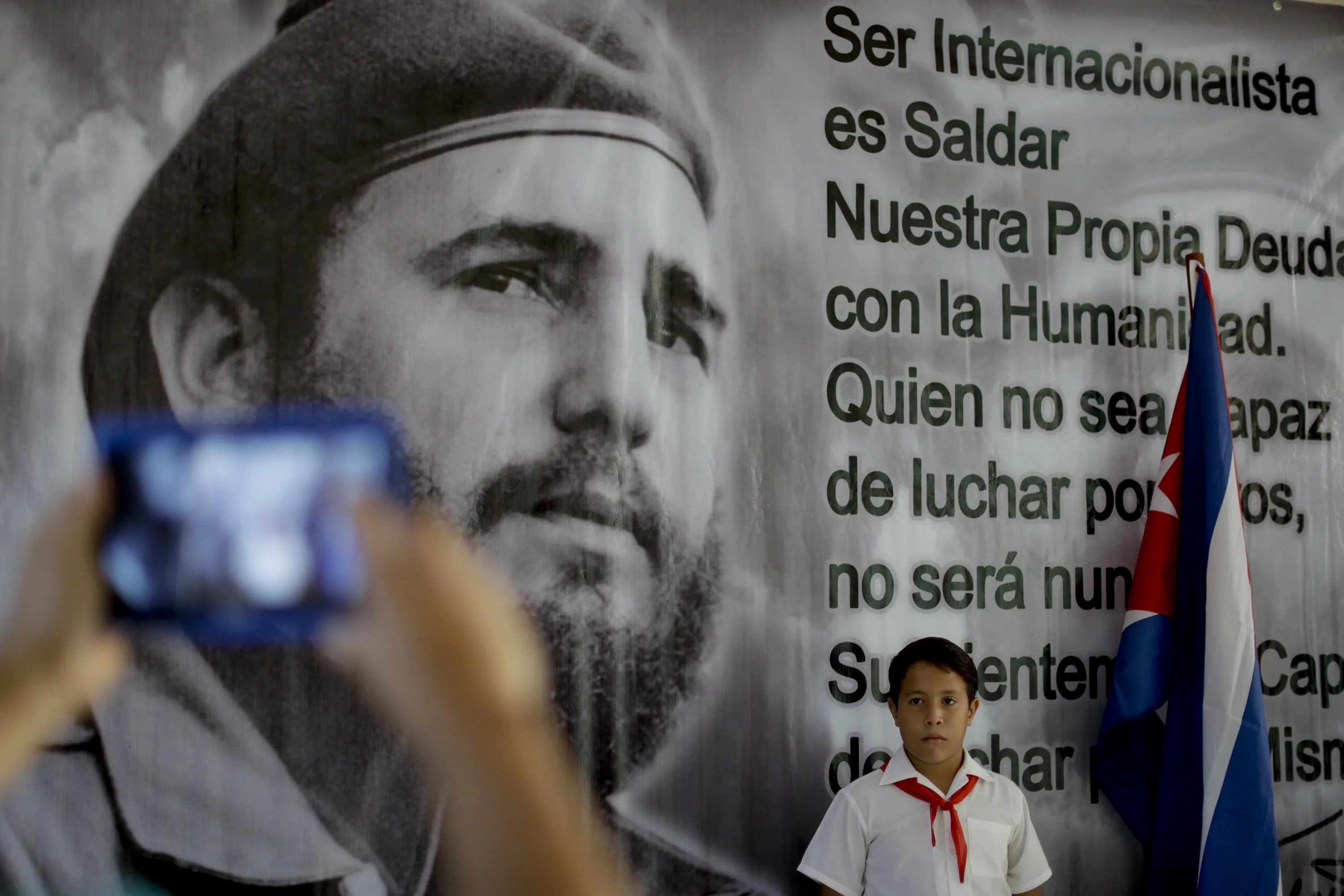 Leona Alarcon posses for a picture beside a poster of late Fidel Castro at memorial in his honor in Guanabacoa on the outskirts in Havana, Cuba, Tuesday, November 29, 2016. Schools and government offices will be closed Tuesday for a second day of homage to Fidel Castro, with the day ending in a rally on the wide plaza where the Cuban leader delivered fiery speeches to mammoth crowds in the years after he seized power. (Photo by Natacha Pisarenko/AP Photo)