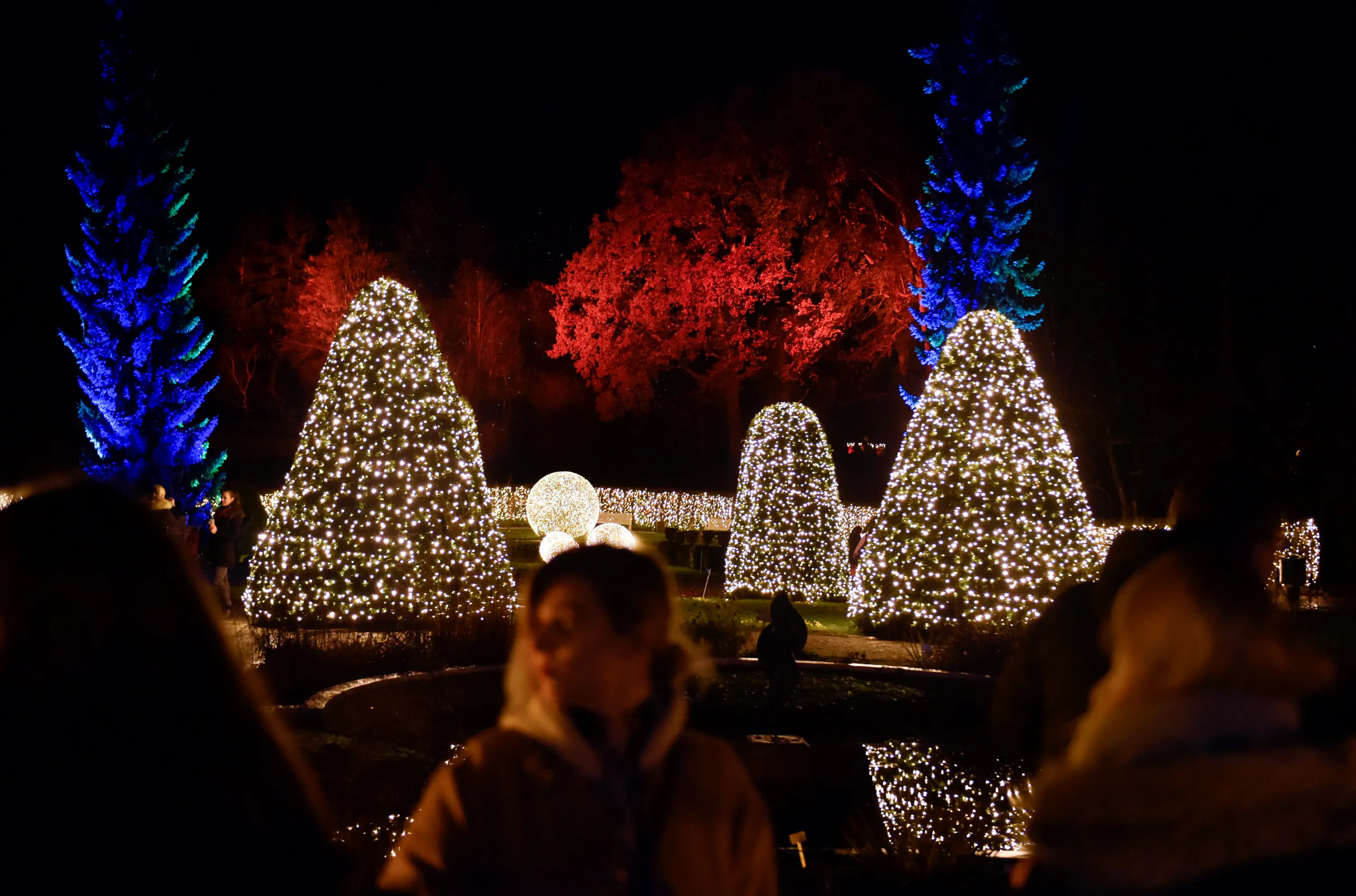 Visitors walk along illuminated objects during the Christmas Garden event at botanic garden in Berlin, Germany November 18, 2016. (Photo by Stefanie Loos/Reuters)