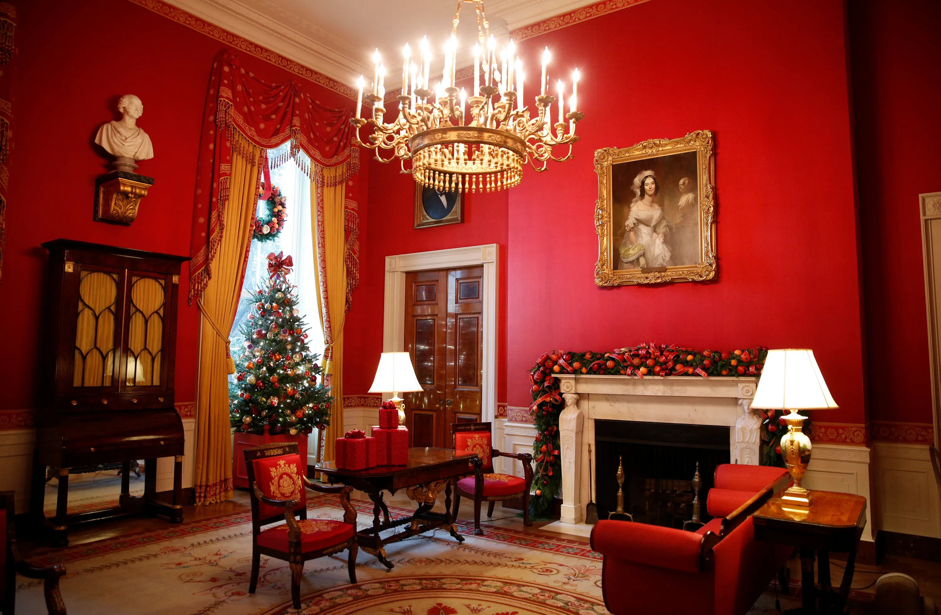 The Red Room is decked out during a holiday decor preview at the White House in Washington, U.S., November 29, 2016. (Photo by Kevin Lamarque/Reuters)