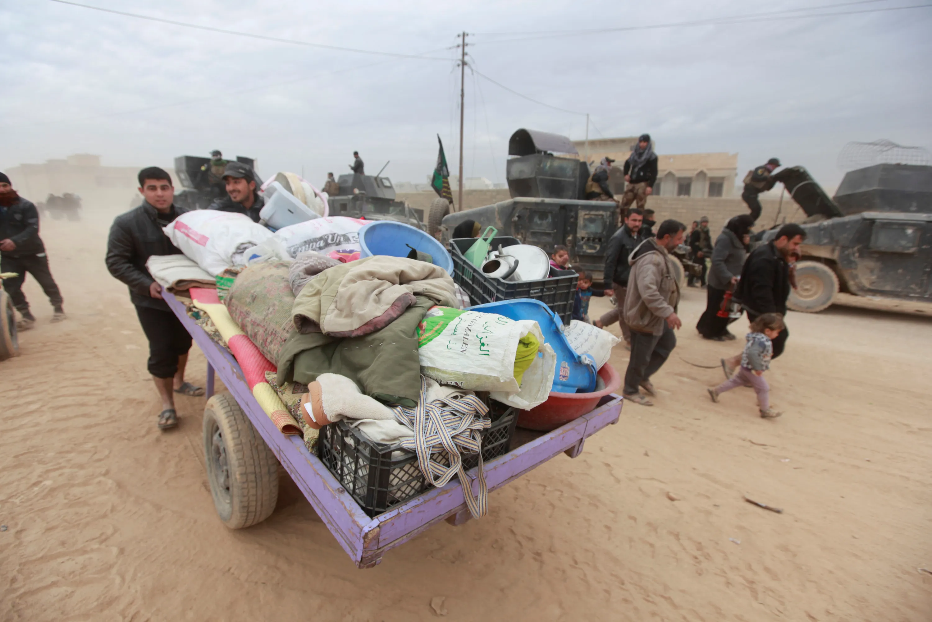 Displaced people who fled the clashes walk past iraqi security forces vehicles during a battle with Islamic State militants in Mosul, Iraq, November 30, 2016. (Photo by Alaa Al-Marjani/Reuters)