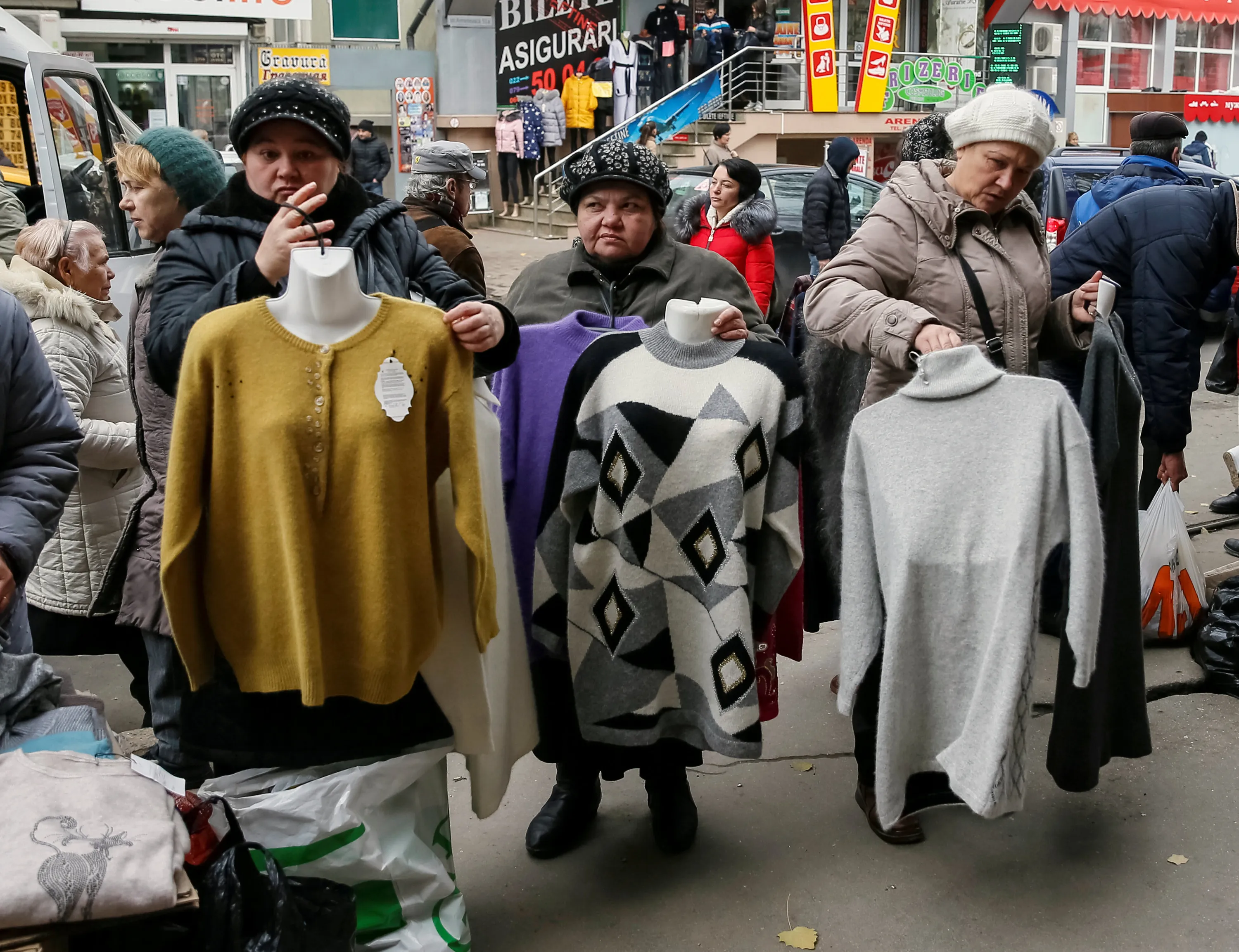 Street vendors sell warm clothes in central Chisinau, Moldova, November 12, 2016. (Photo by Gleb Garanich/Reuters)