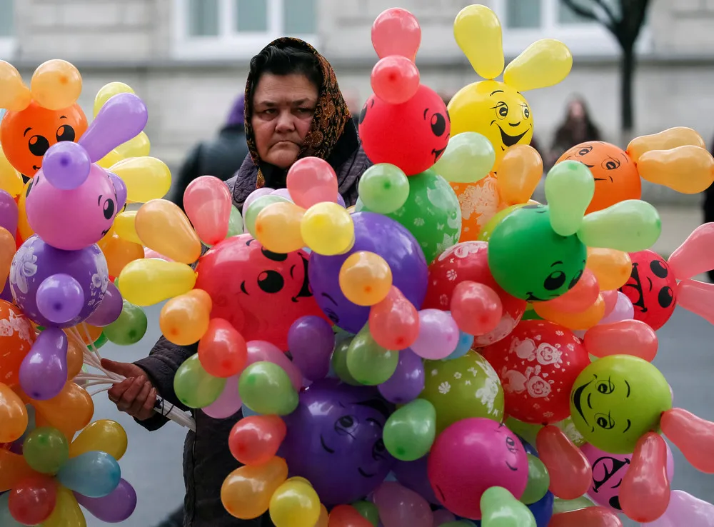 A woman sells balloons on the street in central Chisinau, Moldova, November 12, 2016. (Photo by Gleb Garanich/Reuters)