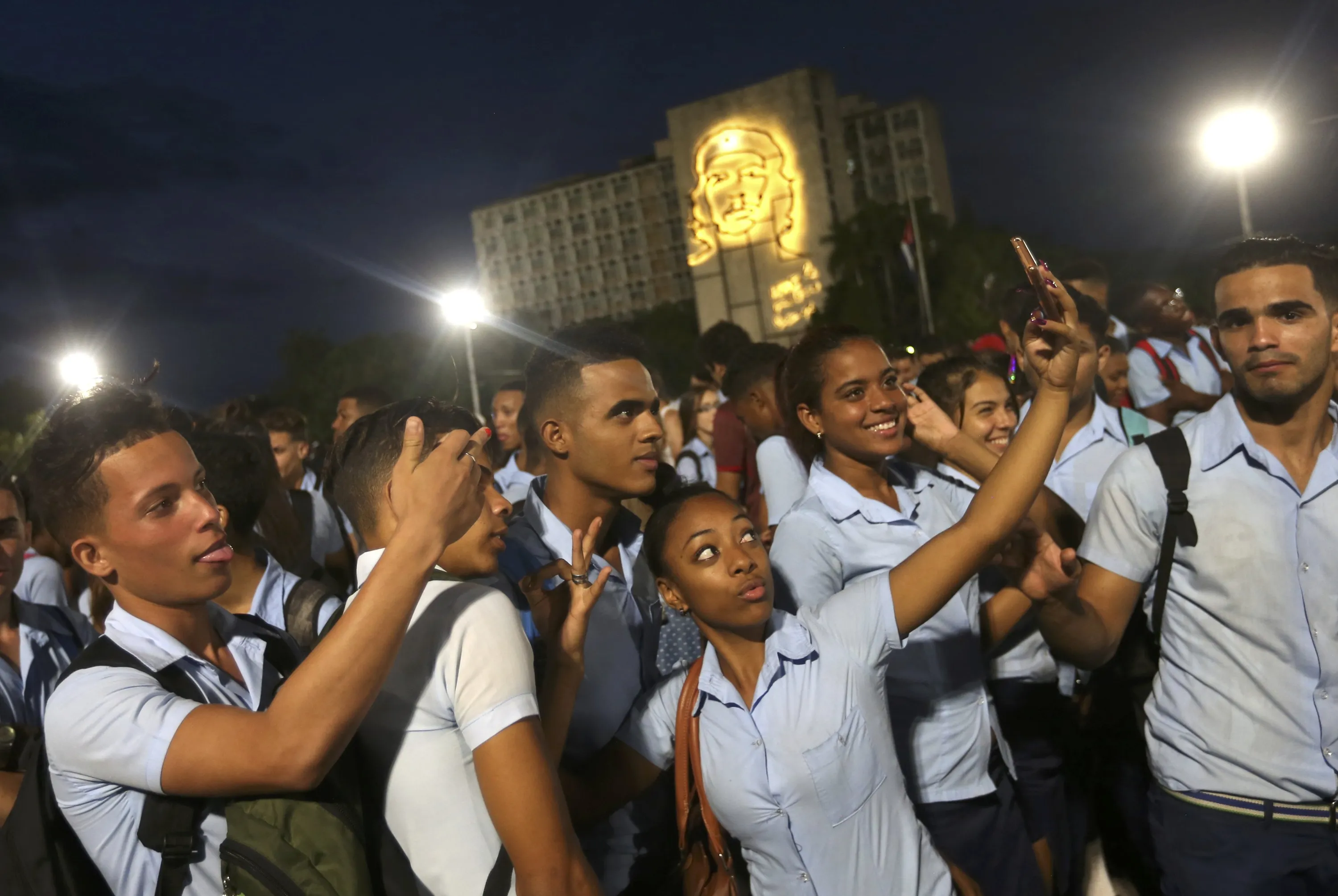Students pose for selfies as they attend a massive tribute to Cuba's late President Fidel Castro in Revolution Square in Havana, Cuba, November 29, 2016. (Photo by Edgard Garrido/Reuters)