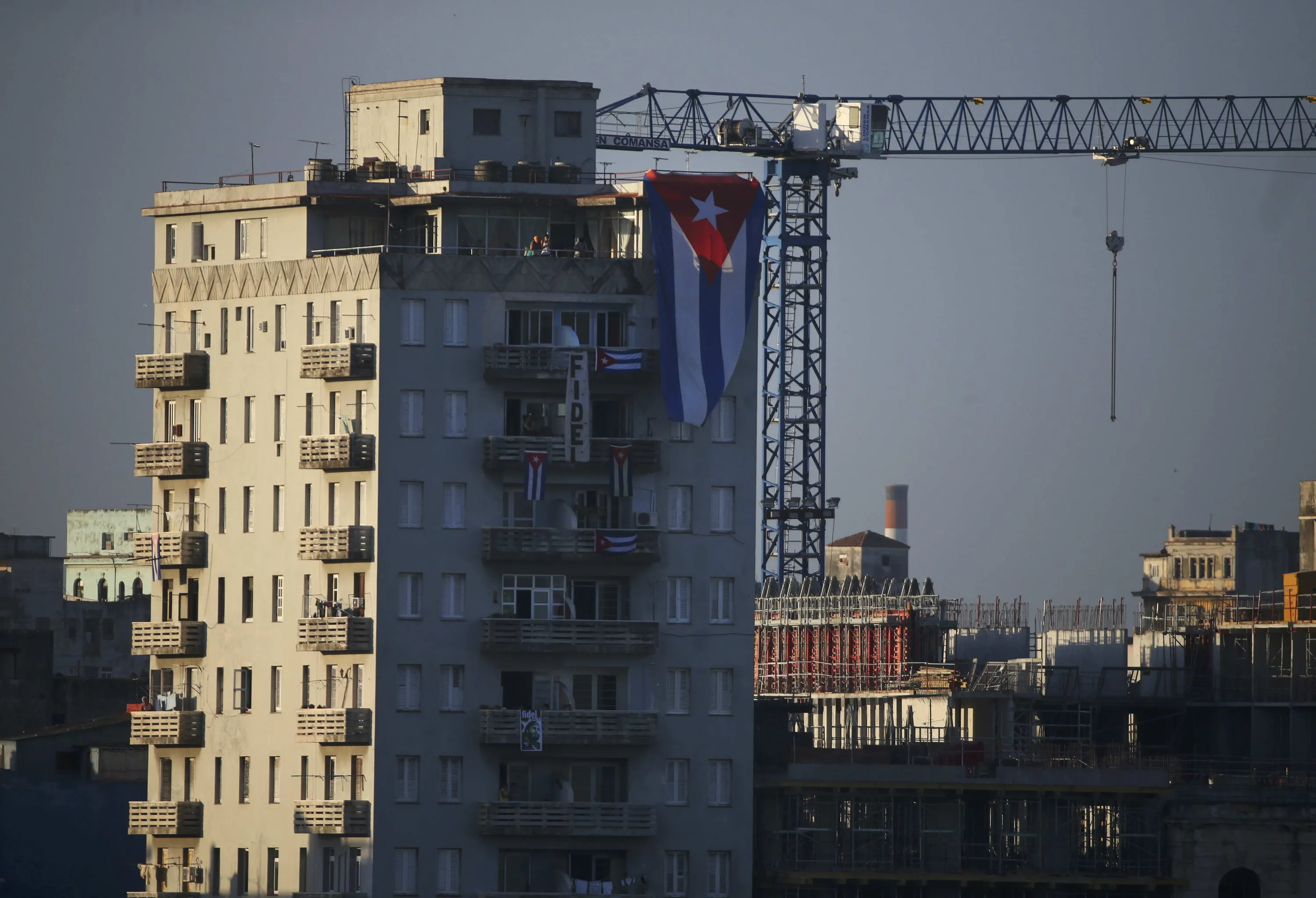 A banner and flag hang from a building in tribute to Cuba's late President Fidel Castro in Havana, Cuba, November 30, 2016. (Photo by Carlos Garcia Rawlins/Reuters)
