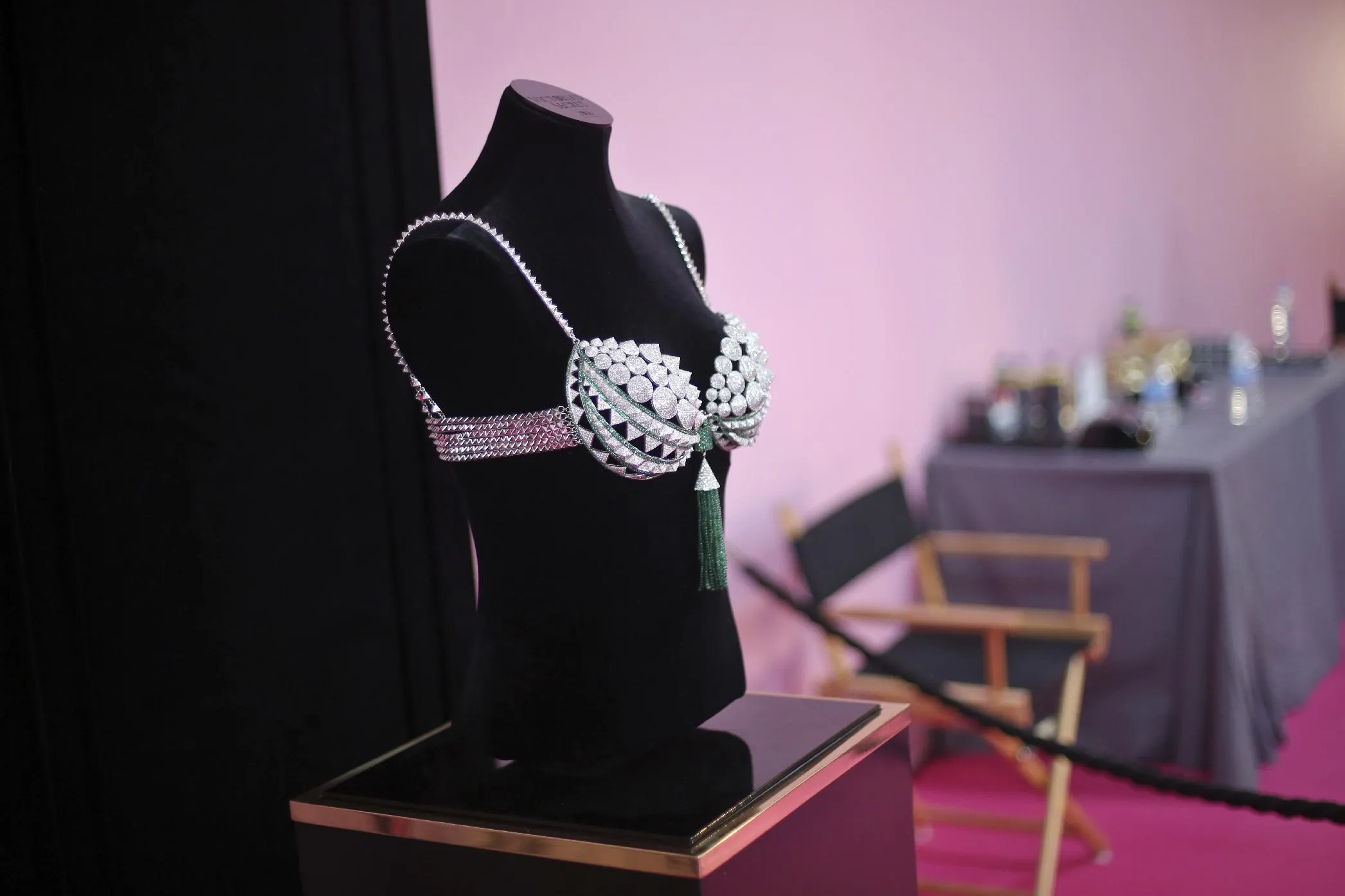 The $3 million Fantasy Bra is displayed before the Victoria's Secret fashion show in Paris, France, Wednesday, Nov. 30, 2016. The pulse-quickening, celebrity-filled catwalk event of the year: the Victoria's Secret fashion show takes place in Paris with performances from Lady Gaga and Bruno Mars. (AP Photo/Thibault Camus)