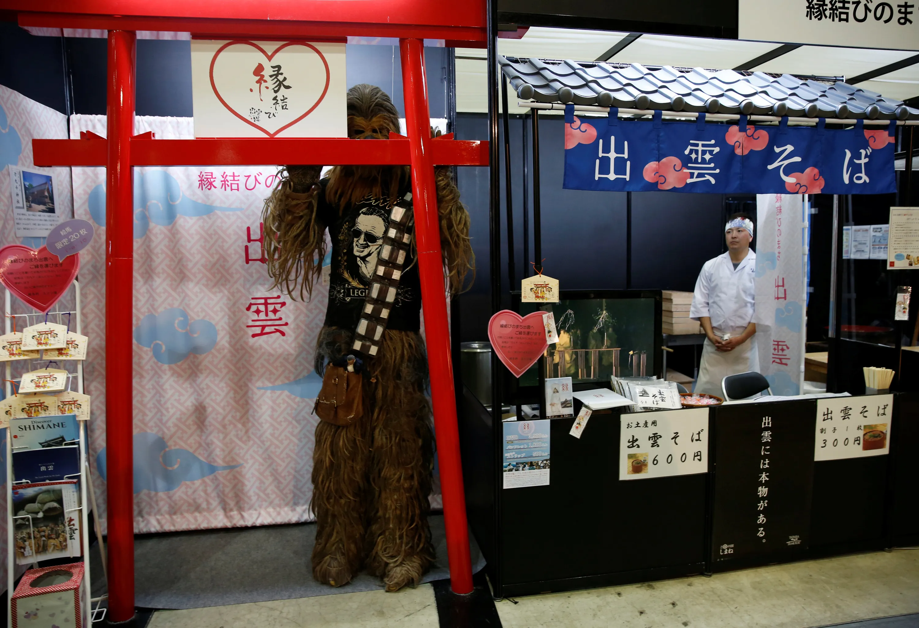 A man dressed up as Chewbacca, a Star Wars character, takes a break next to a Japanese soba noodles shop at Tokyo Comic Con at Makuhari Messe in Chiba, Japan December 2, 2016. (Photo by Issei Kato/Reuters)